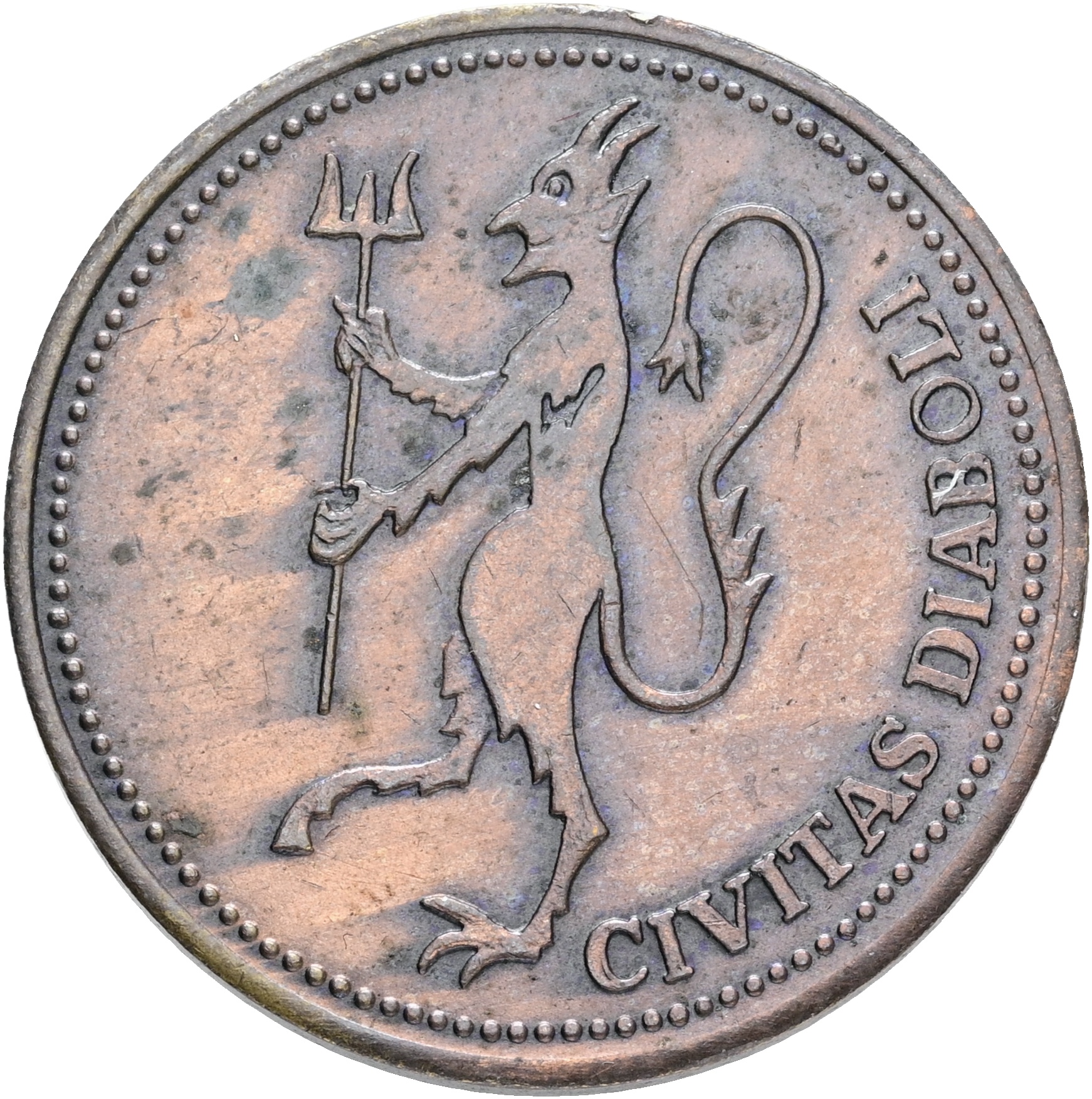 Anholt, satanmønt, 13. maj 1973, Ae, 31 mm, 10,62 g. Fundet ved San Benedetto klosteret (også kendt som Sacro Speco (Hellig Grotte)) i Subiaco, Italien, før 2022.