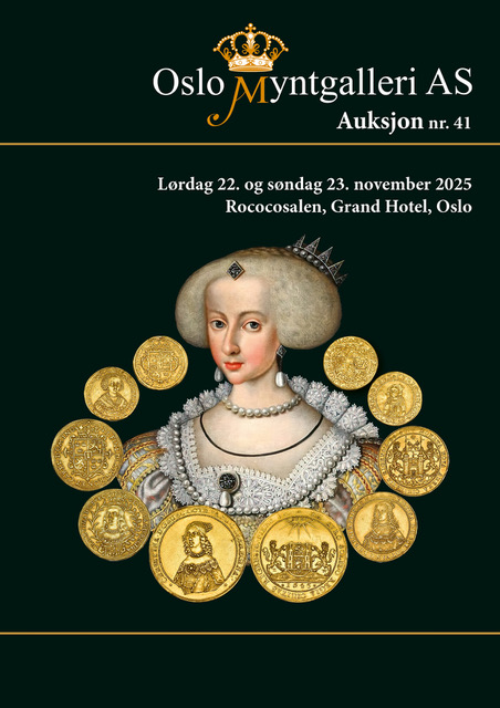 Auktionskatalog – Oslo Myntgalleri 41. Sendes uden beregning, når det udkommer i oktober 2025.