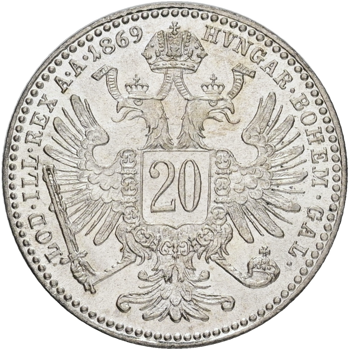 Austria, Franz Joseph I, 20 Kreuzer 1869, KM 2212, UNC