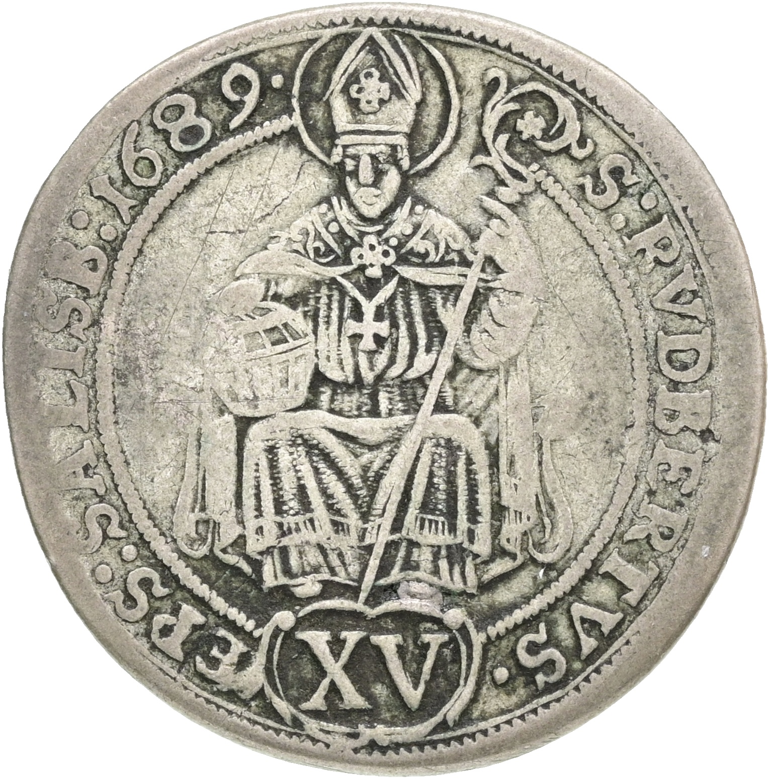 Austria, Salzburg, Johann Ernst von Thun (1687-1709), 15 Kreuzer 1689, KM 250, VF-F