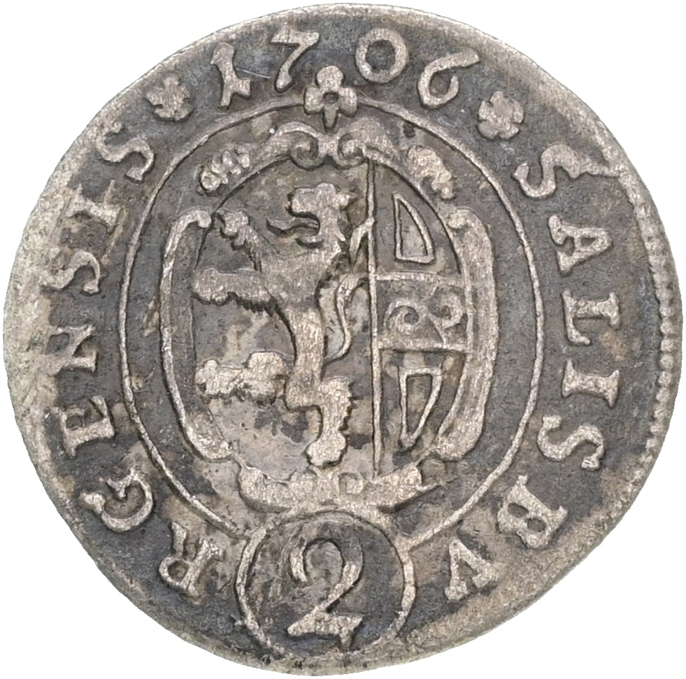 Austria, Salzburg, Johann Ernst von Thun (1687-1709), 2 Kreuzer 1706, KM 280, VF