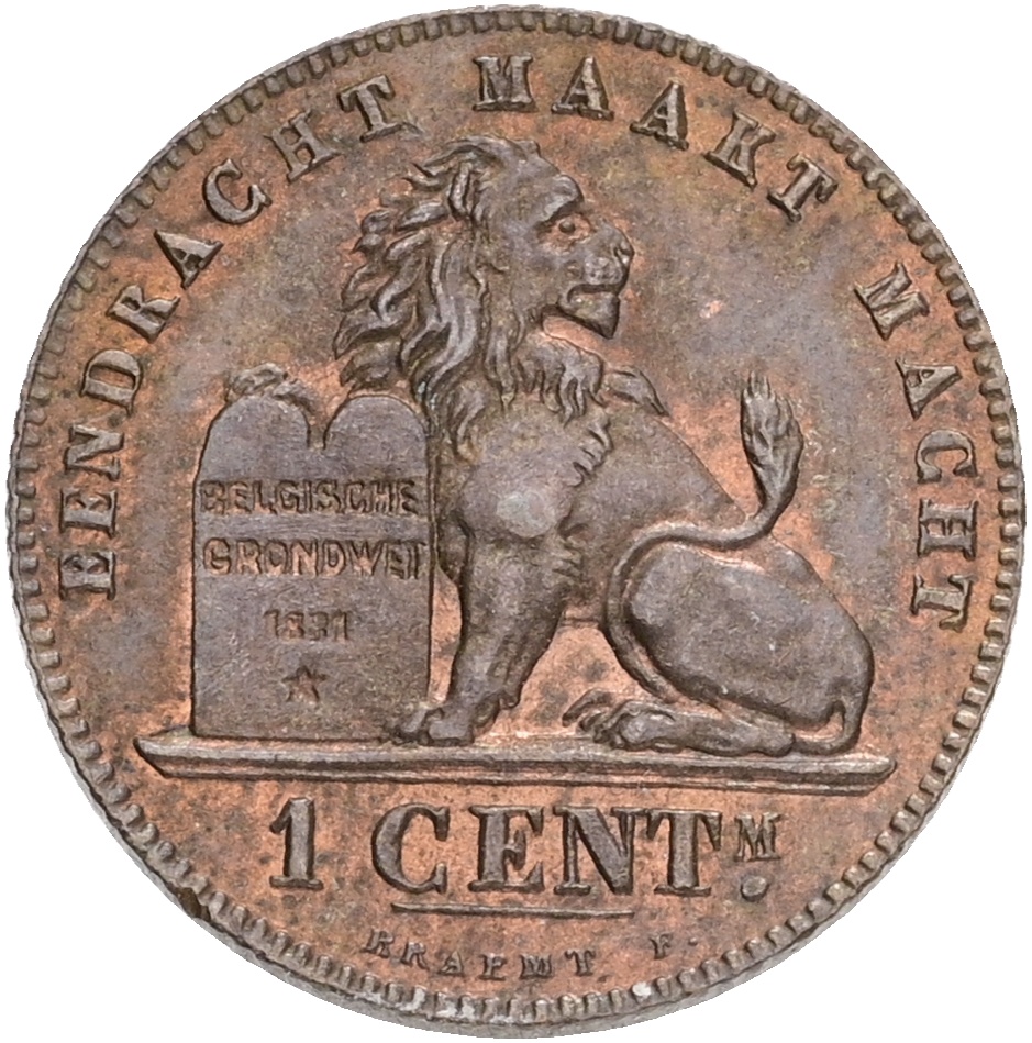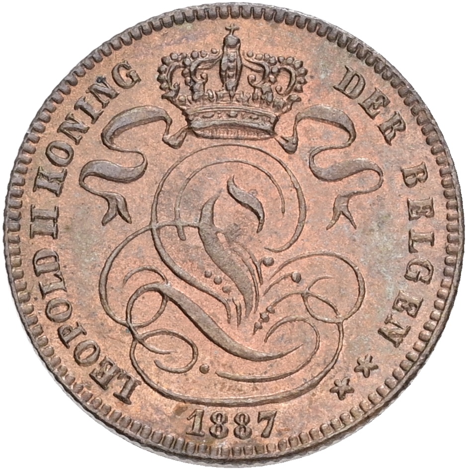 Belgium, Leopold II, 1 Cemtime 1887, KM 34, AU