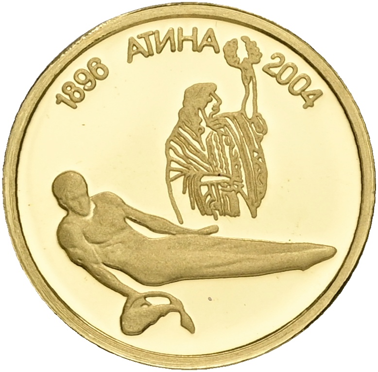 Bulgaria, 5 Leva 2002, Gymnastics, Au (999/1000), 1.24 g, KM 262, Proof