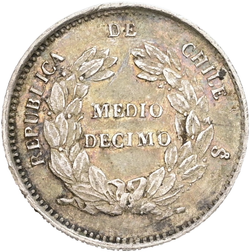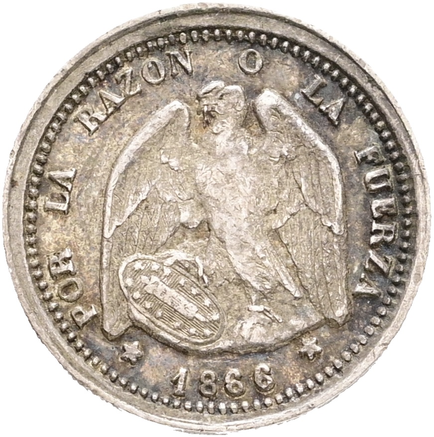 Chile, 1/2 Decimo 1866, KM 137.1, EF-VF