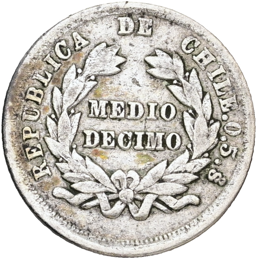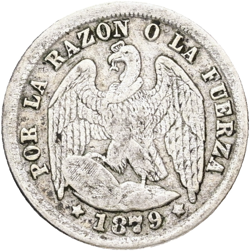 Chile, 1/2 Decimo 1879, KM 137.3, VF