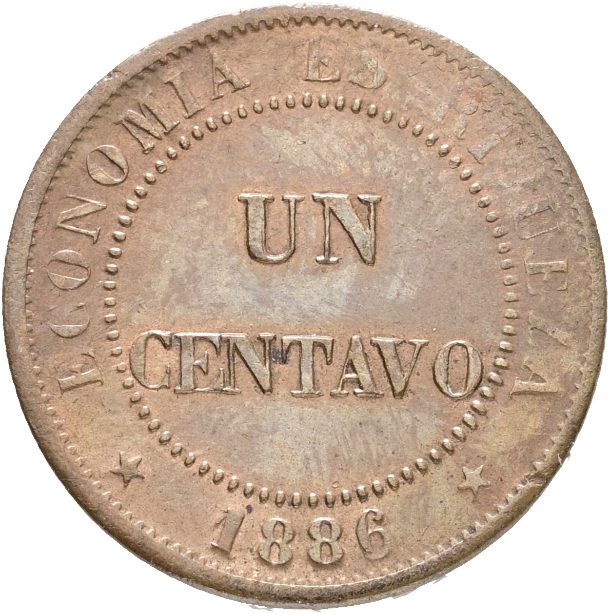 Chile, Un Centavo 1886, KM 146a, EF, wiped.