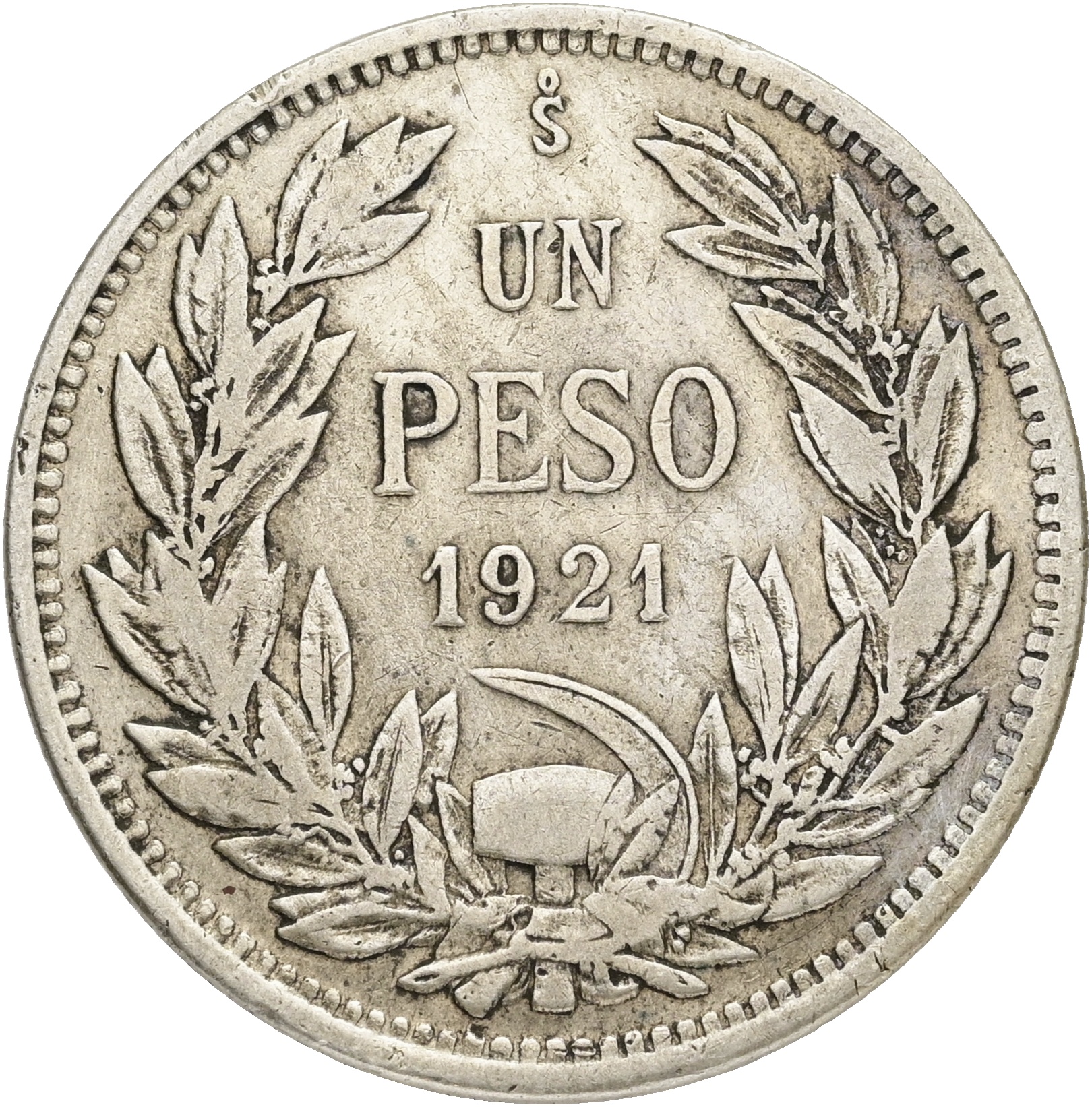 Chile, Un Peso 1921, KM 152.5, VF-F