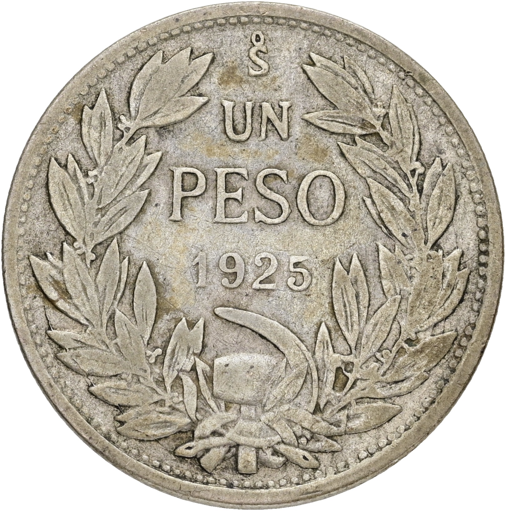 Chile, Un Peso 1925, VF-F, KM 1526, VF-F