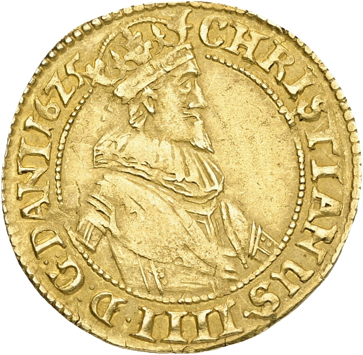 Christian IV (1588-1648), Rhinsk gylden 1625, Sieg 136.1, H 29, S 1, F 43, kv. 1+. Sjælden. Ex. Künker 291, 15.03.2017, lot 4061; ex. Poul Henning Knudsen VII, 2011, lot 61; ex. Provinsbankens samling 1985.