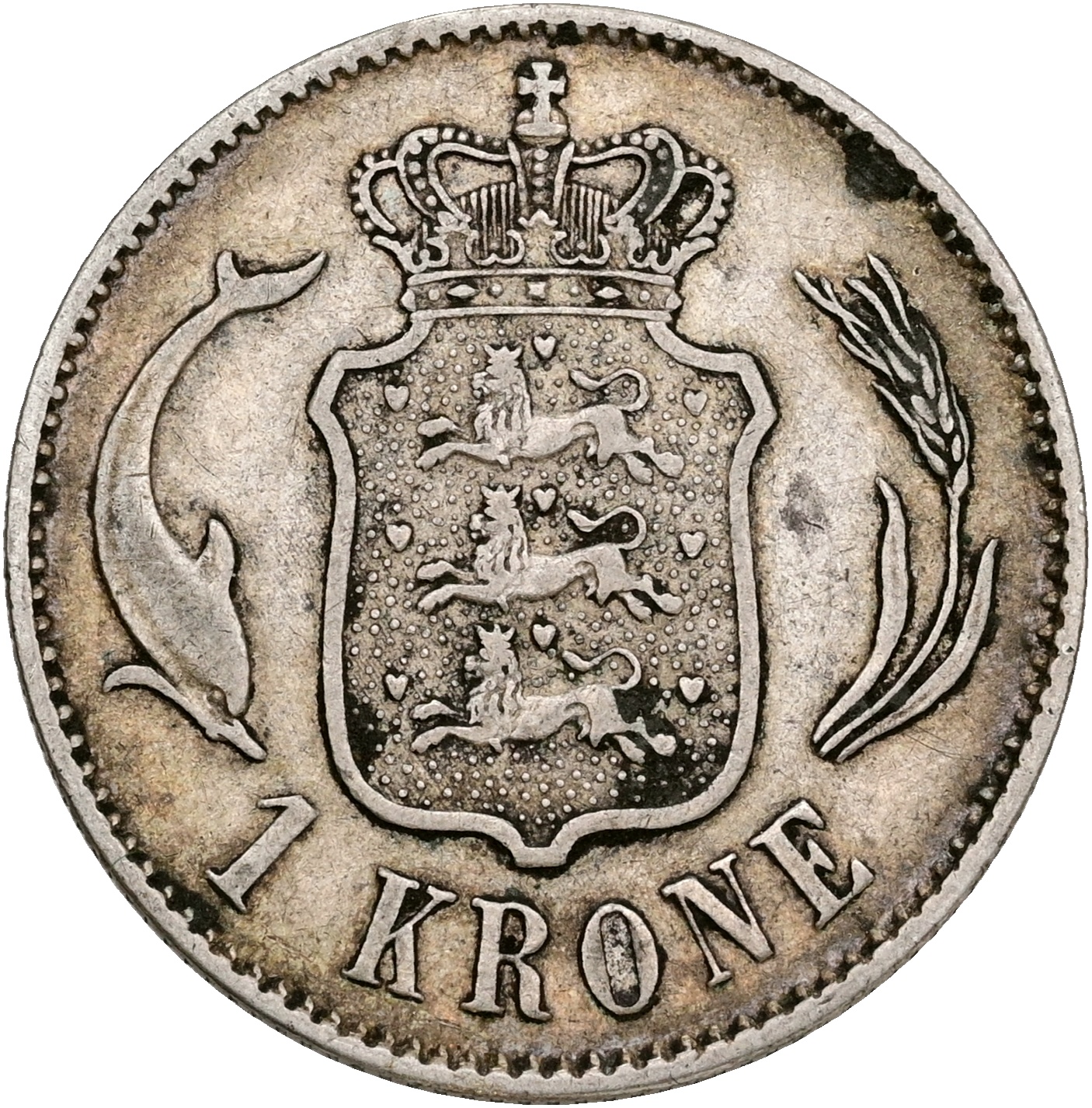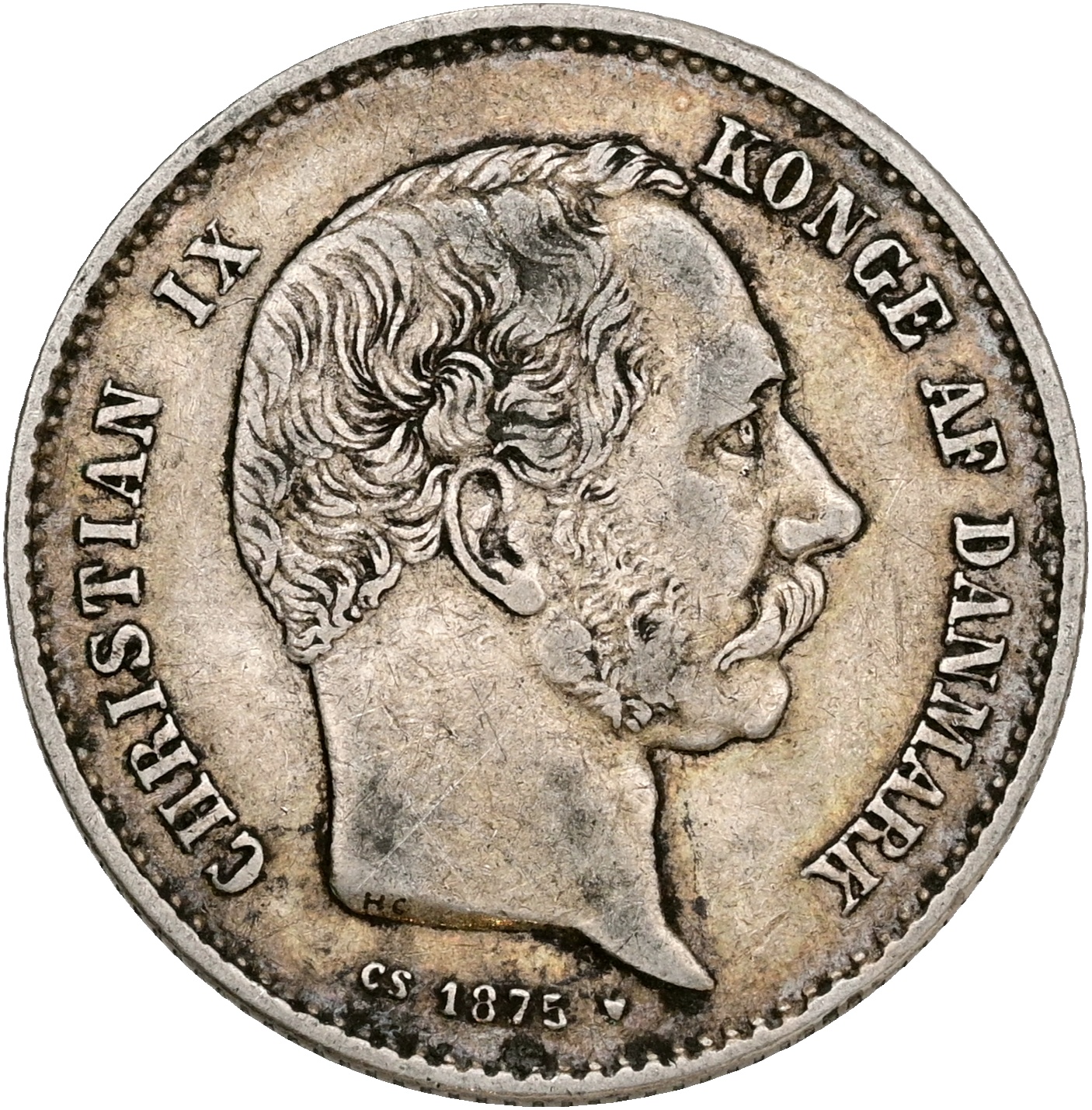 Christian IX, 1 krone 1875, Sieg 1.1, H 14A, kv. 1+