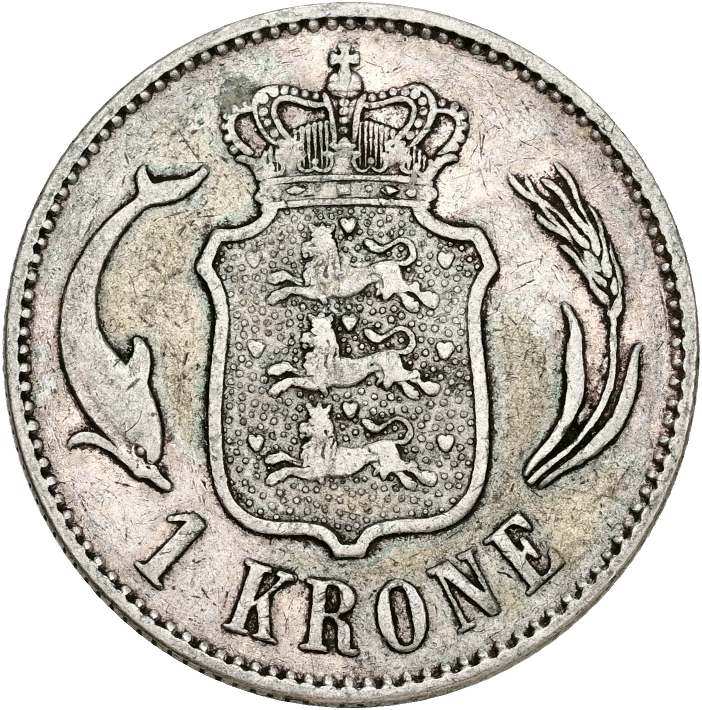 Christian IX, 1 krone 1876, Sieg 1.1, H 14A, kv. 1+-1