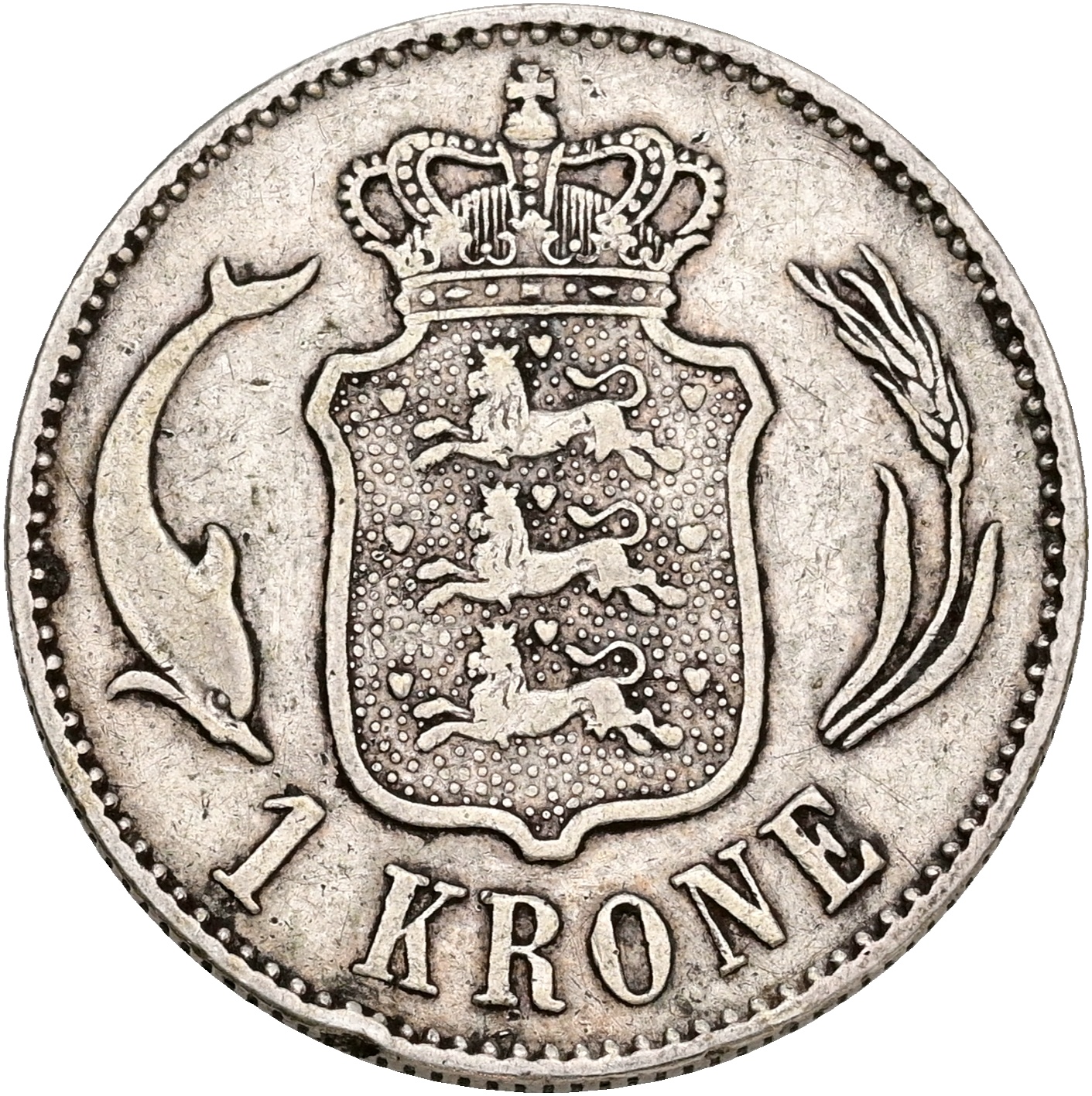 Christian IX, 1 krone 1876, Sieg 1.1, H 14A, kv. 1+-1, ks.