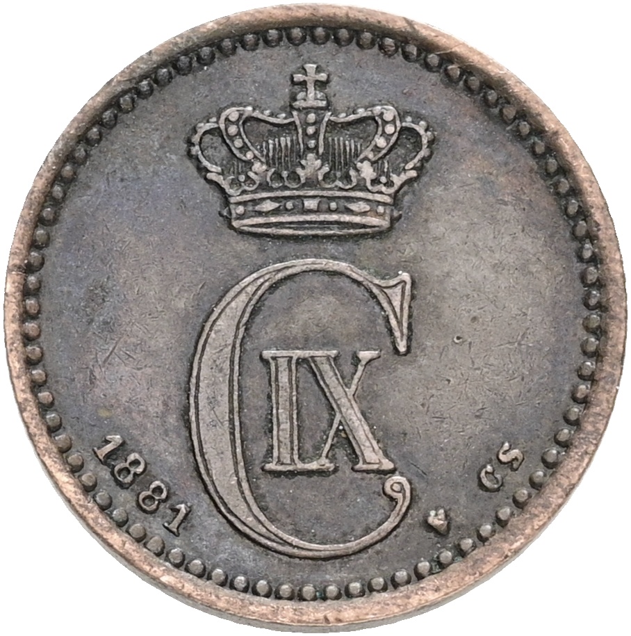Christian IX, 1 øre 1881, H 19A, Sieg 1.1, kv. 1+, lidt korr.
