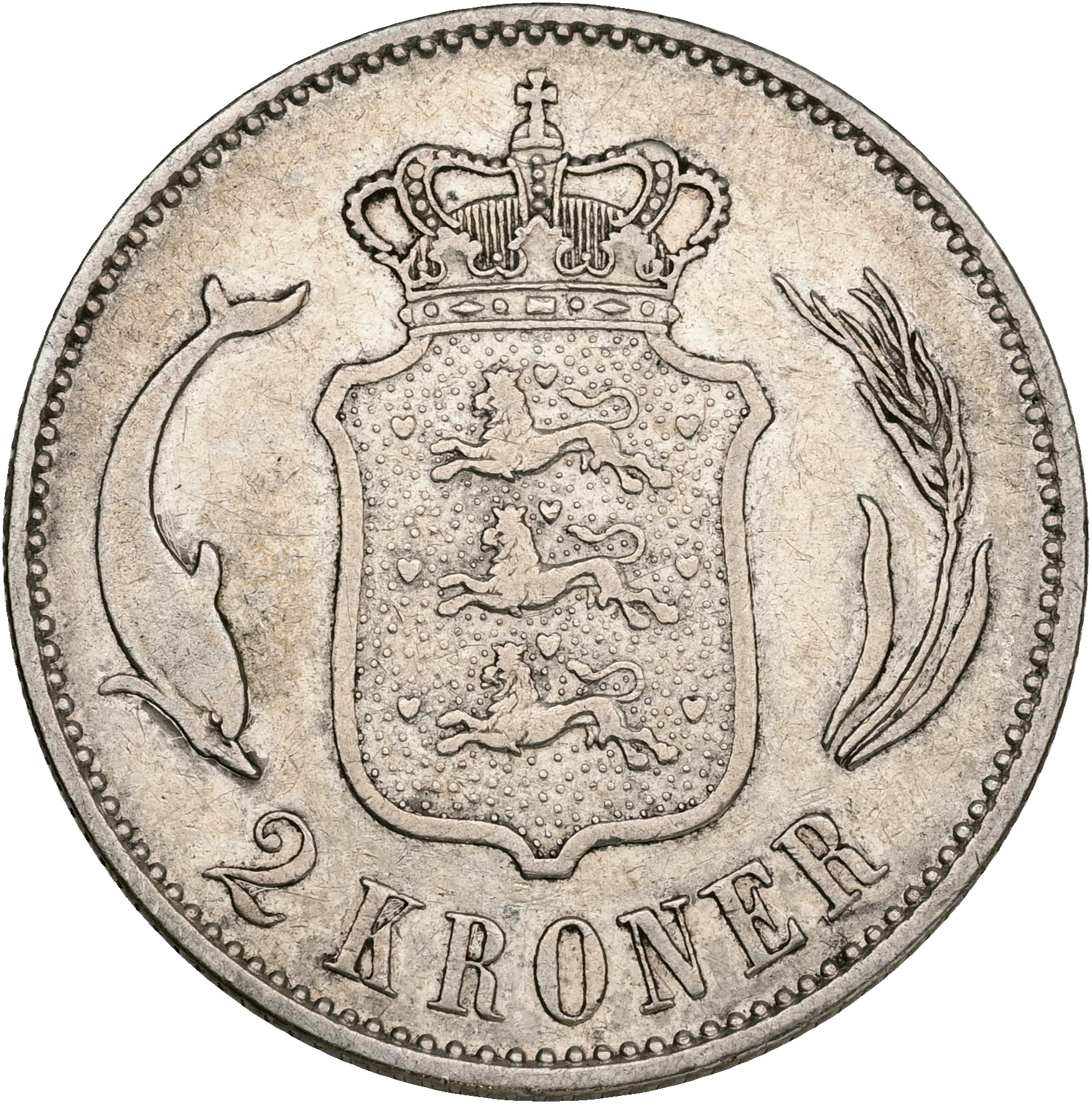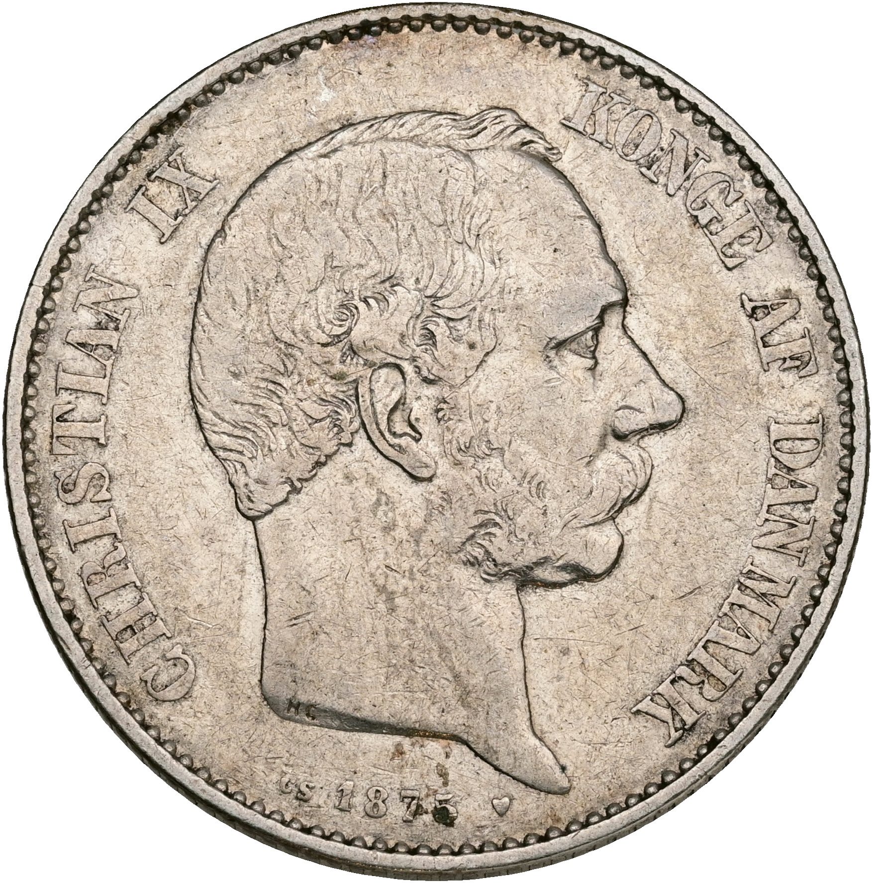 Christian IX, 2 kroner 1875, Sieg 1.1, H 13A, kv. 1+-1
