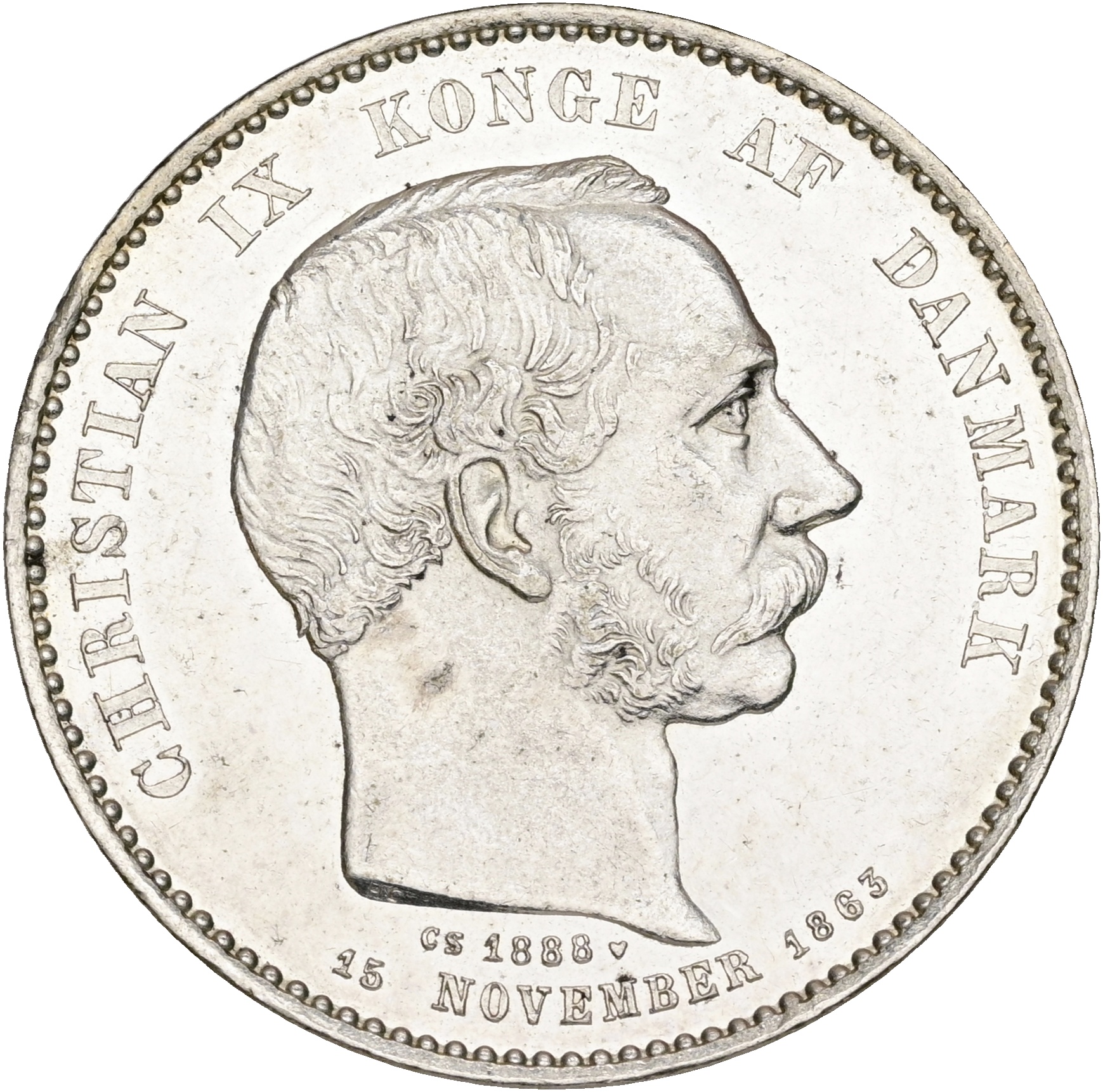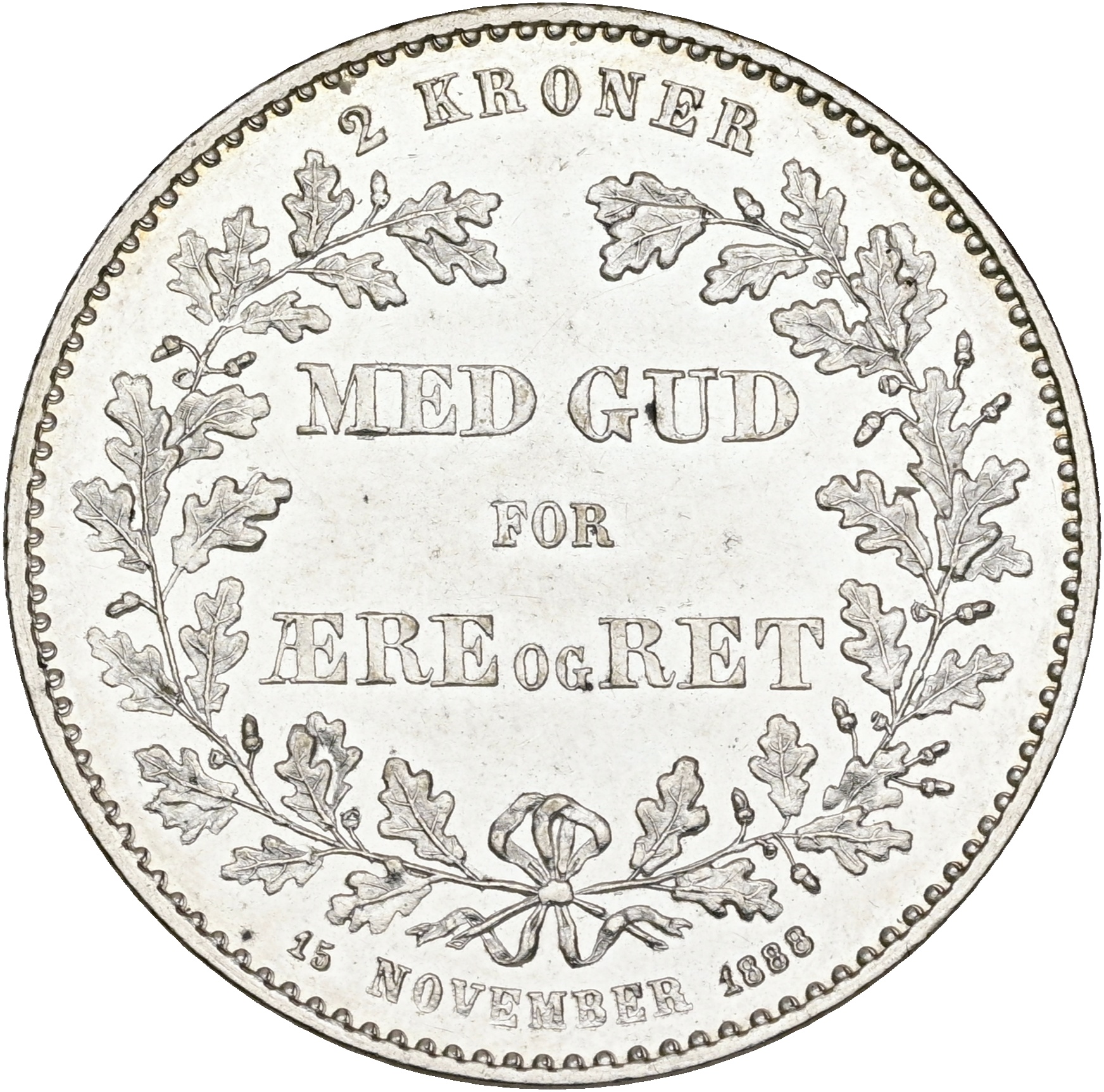 Christian IX, 2 kroner 1888, 25 års regeringsjubilæum, Sieg 1, H 10, kv. M-0, håndteringsspor.