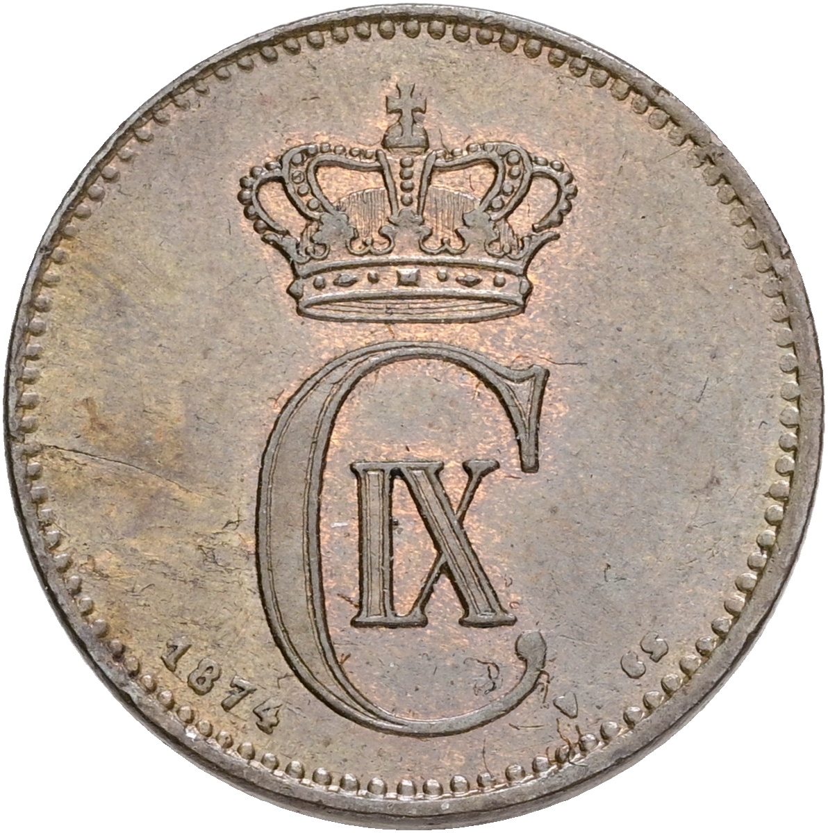 Christian IX, 2 øre 1874, Sieg 1.1, H 18A, kv. 1+