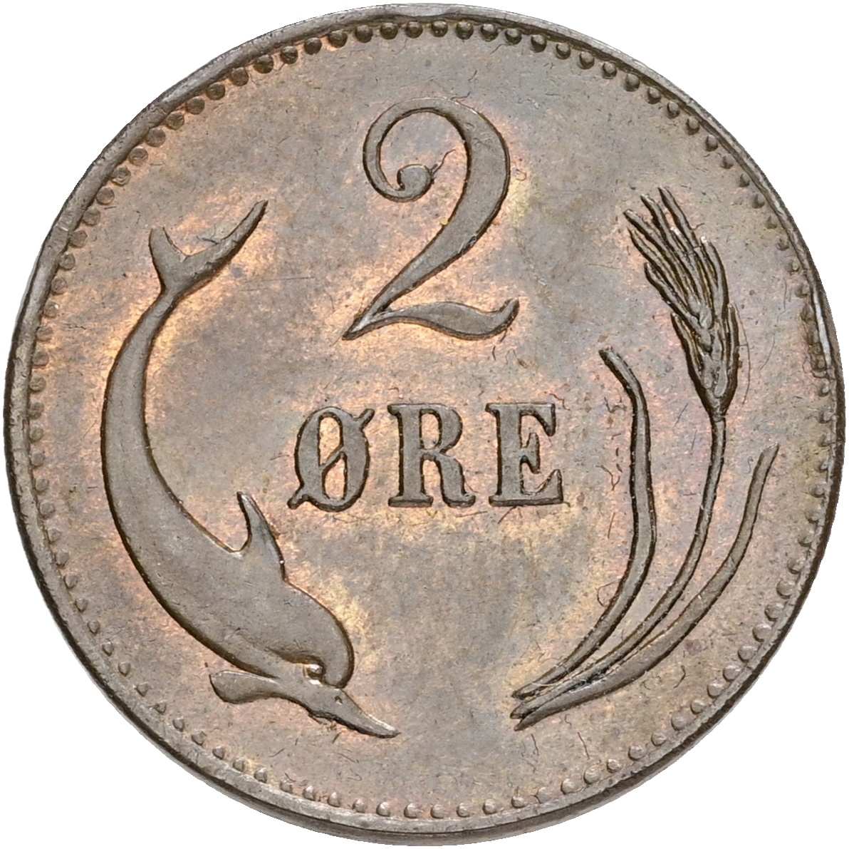 Christian IX, 2 øre 1892, H 18A, Sieg 1.1, kv. 1+, belægninger.