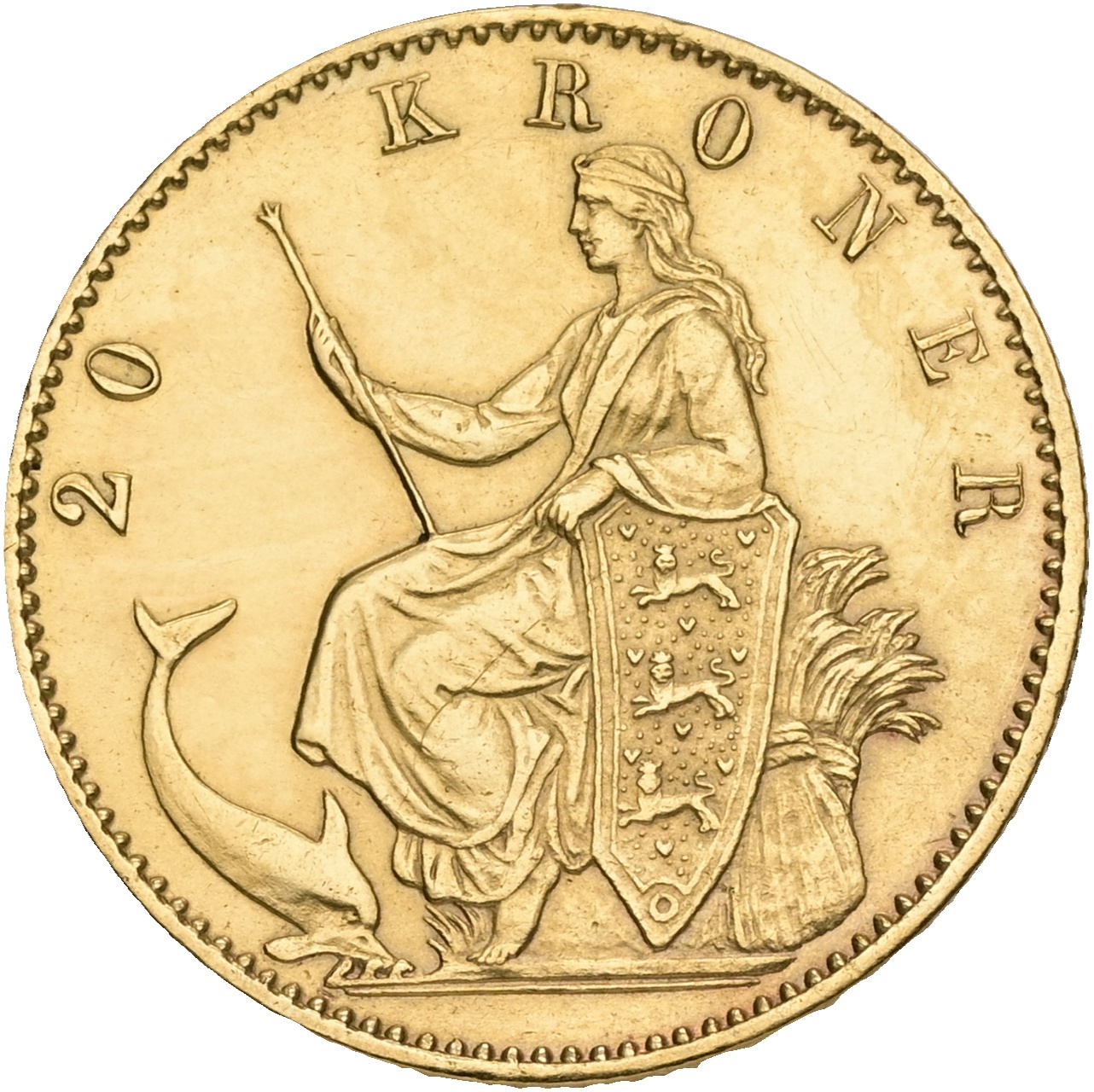 Christian IX, 20 kroner 1874, H 8A, F 295, Sieg 1.1, kv. 01-1+, let rens. Ex. Bruun Rasmussen 1449, 08.12.2014, lot 5119, her beskrevet som kv. 0