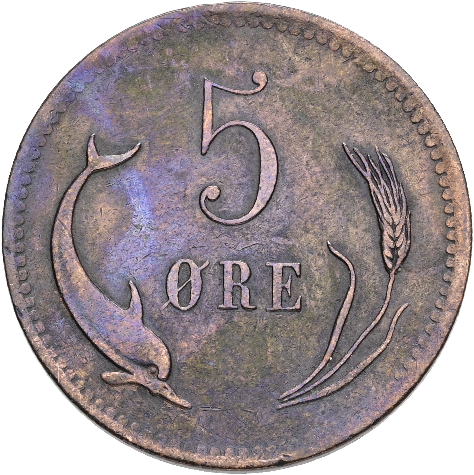 Christian IX, 5 øre 1875, Sieg 1.1, H 17A, kv. 1+-1, ks.