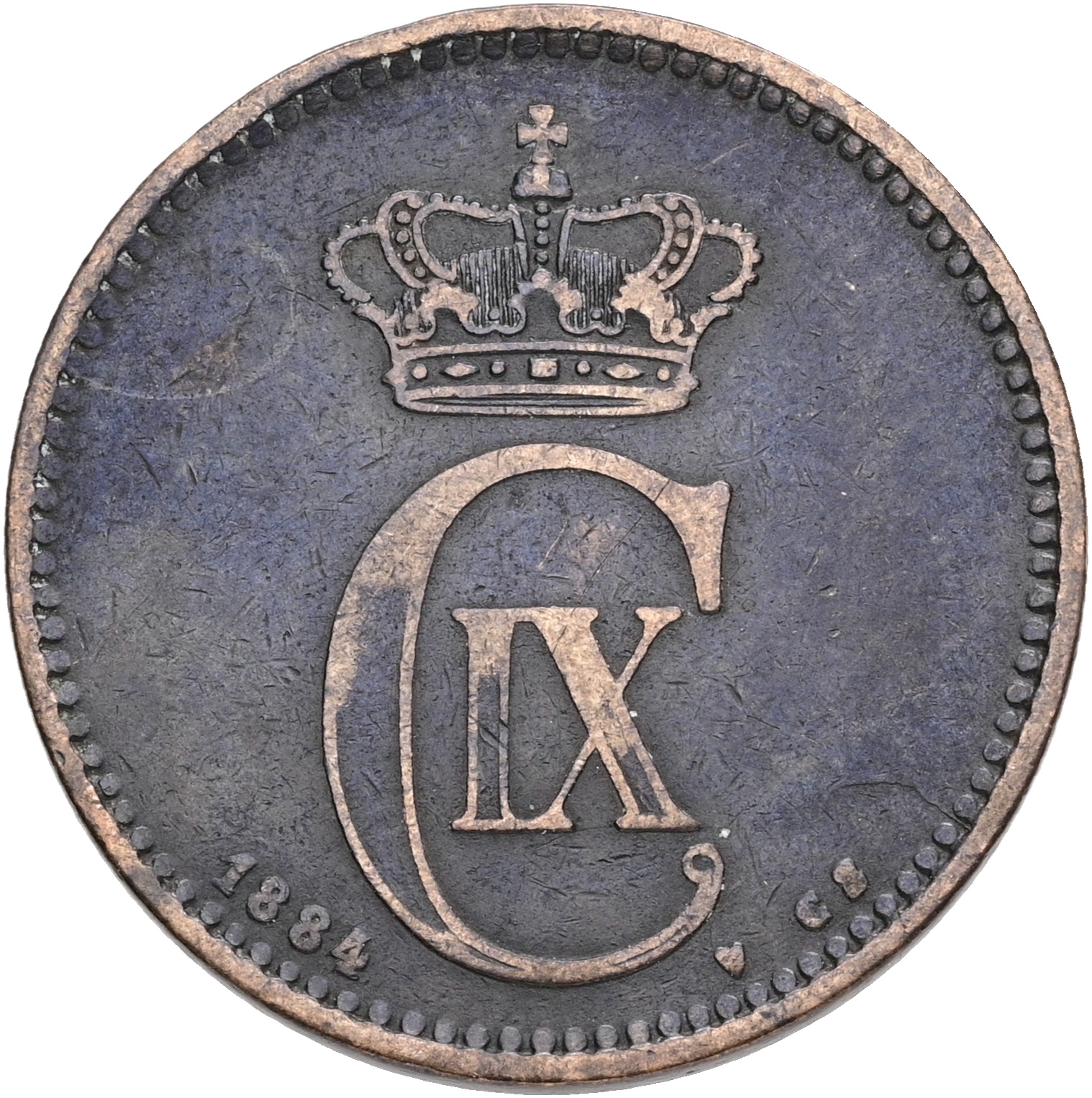 Christian IX, 1 øre 1880, H 19A, Sieg 1.1, kv. 01-1+, let korroderet.