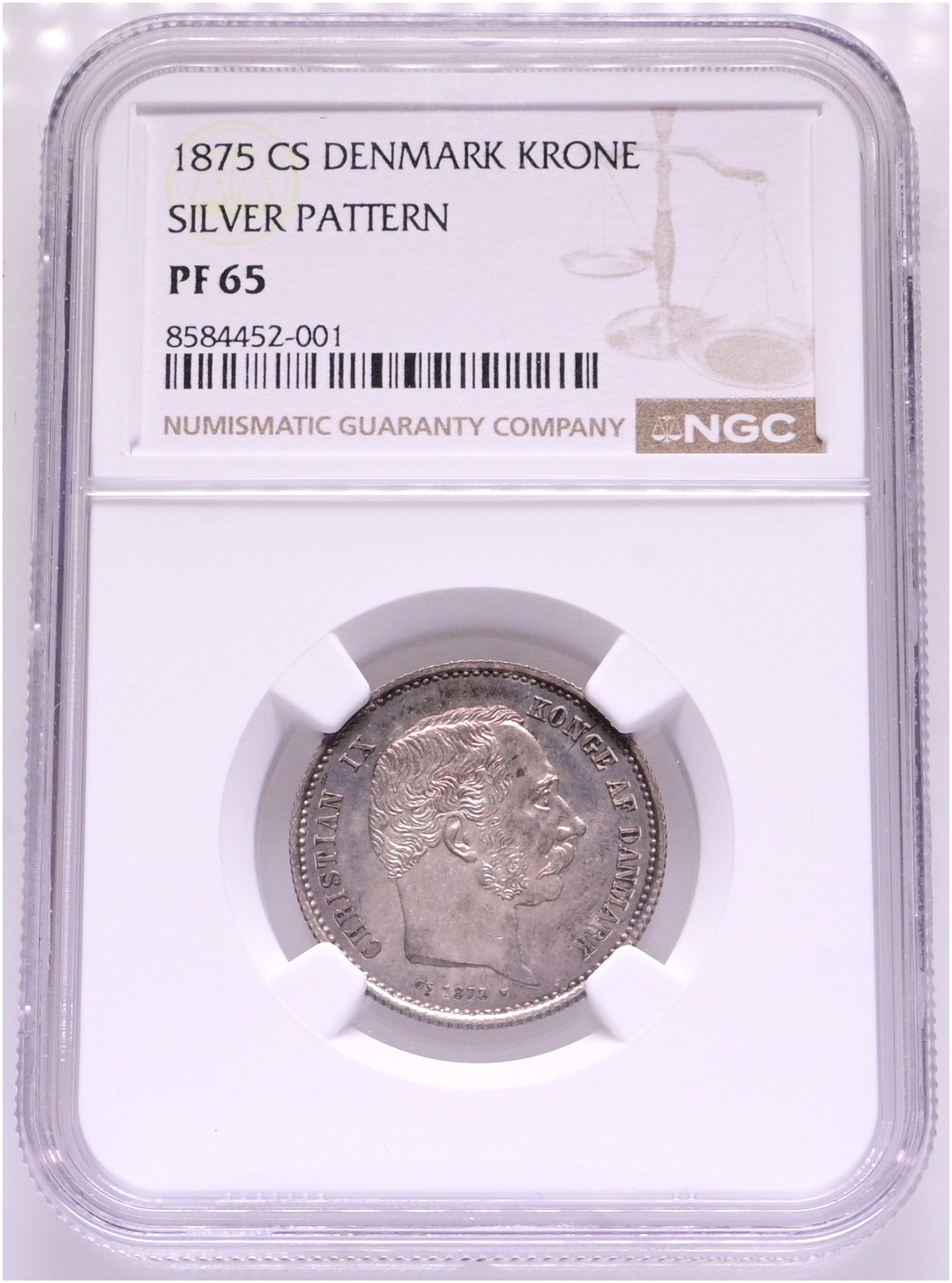 Christian IX, prøvemønt, 1 krone 1875, uden HS på halsafsnittet, Sieg 1, KM PnA63, NGC PF 65