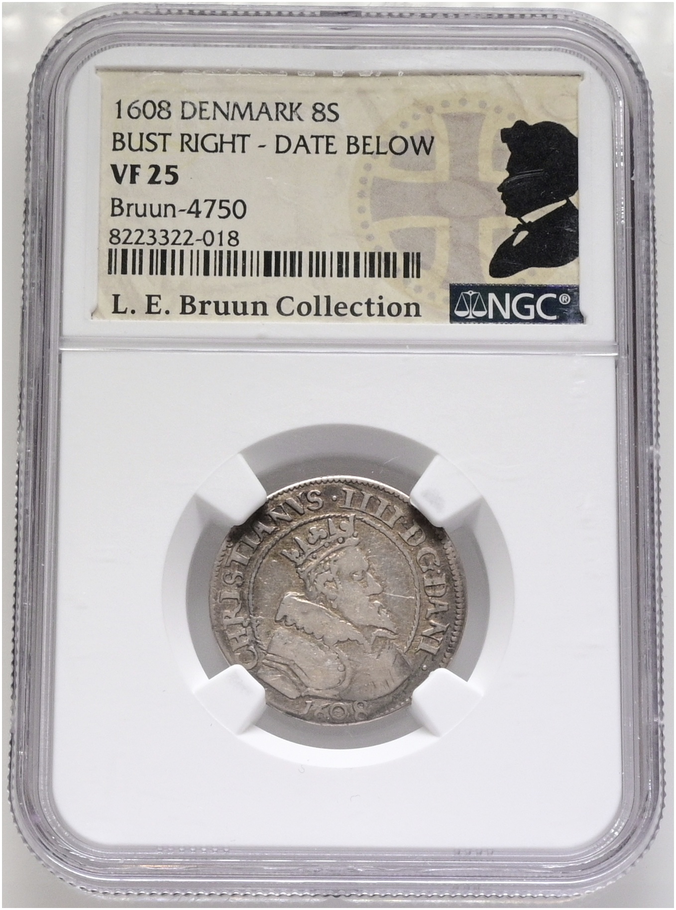 Christian IV, 8 skilling 1608, Sieg 54.1, H 93A, LEB 4750, NGC VF 25, ex. L.E. Bruun.