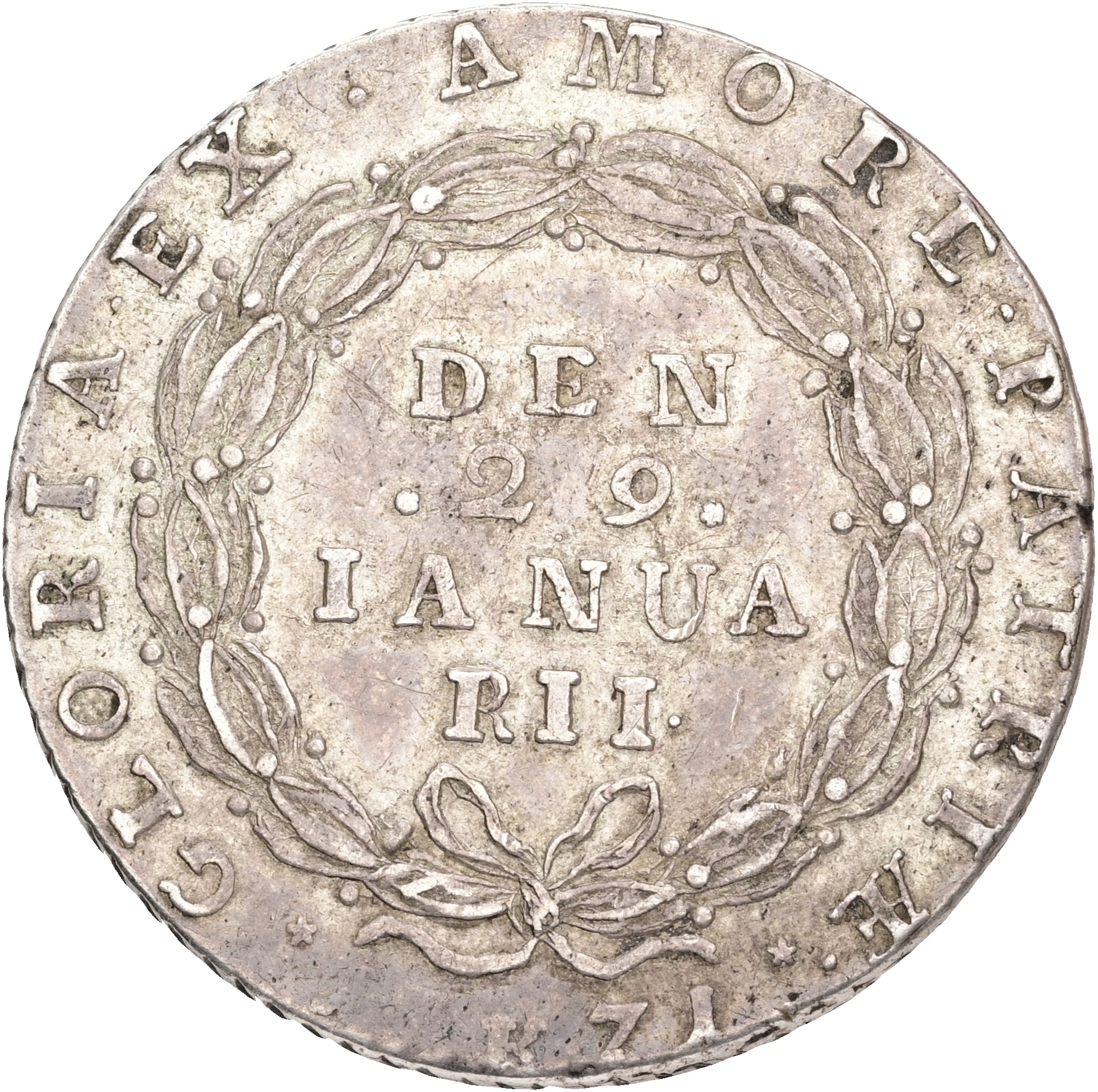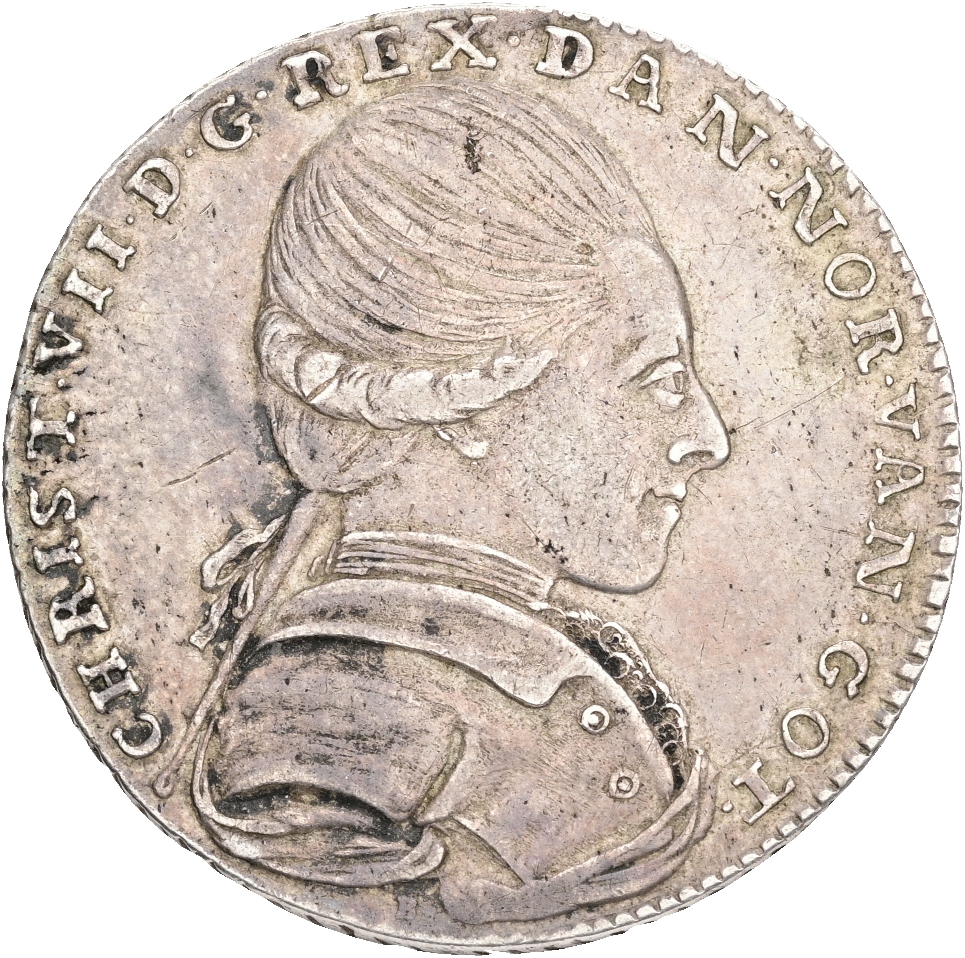 Christian VII, krone 1771, ‘fødselsdags-krone’, Sieg 16, H 23, FP E4, kv. 01-1+, fint patineret eksemplar med rester af møntskær. Præget i anledning af kongens 22 års fødselsdag d. 29. januar.