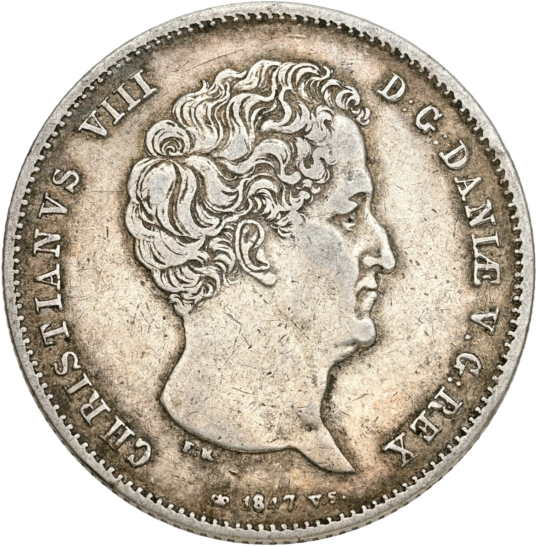 Christian VIII, rigsbankdaler 1847 VS, Sieg 12.1, H 4A, kv. 1+-1/1+, lille ks.