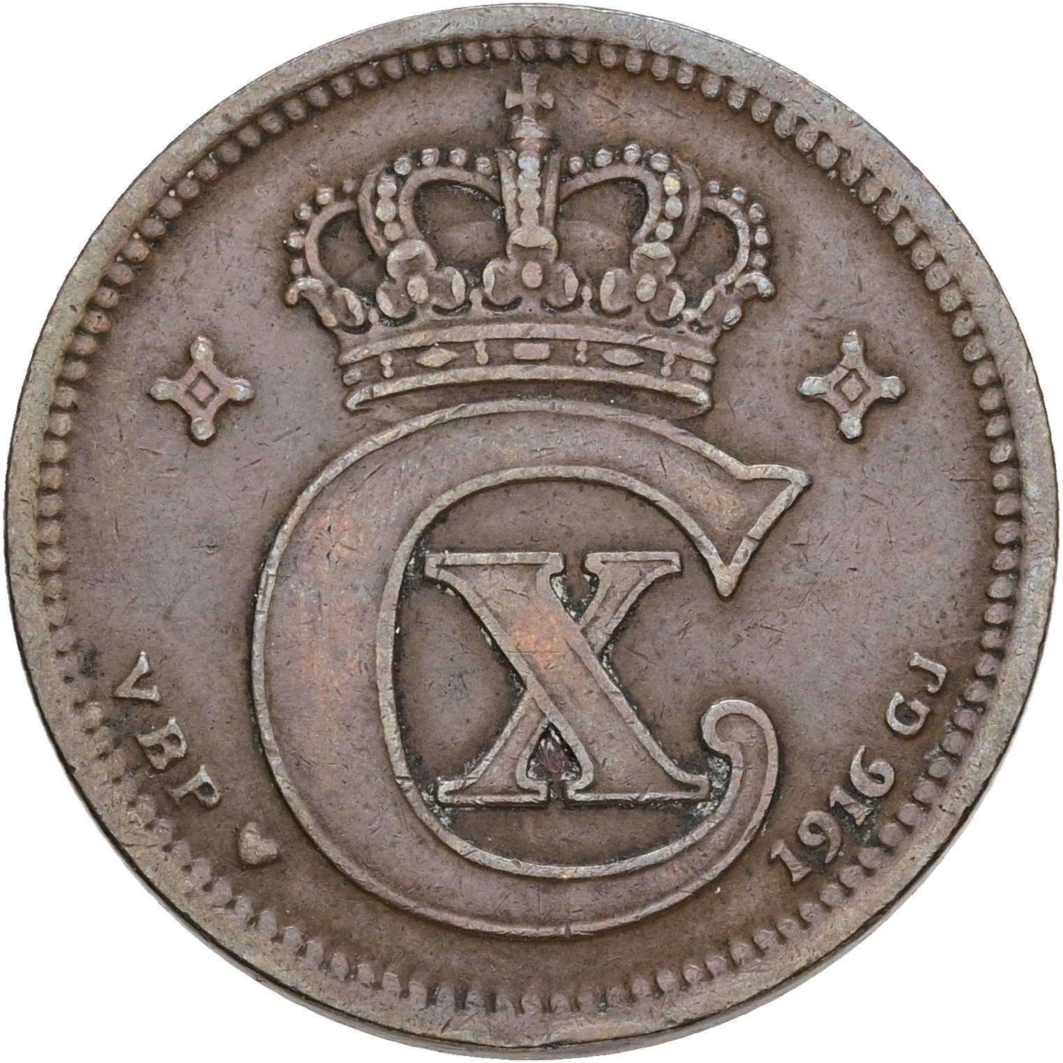 Christian X, 5 øre 1916, Sieg 3.1, H 14A, kv. 1+-1