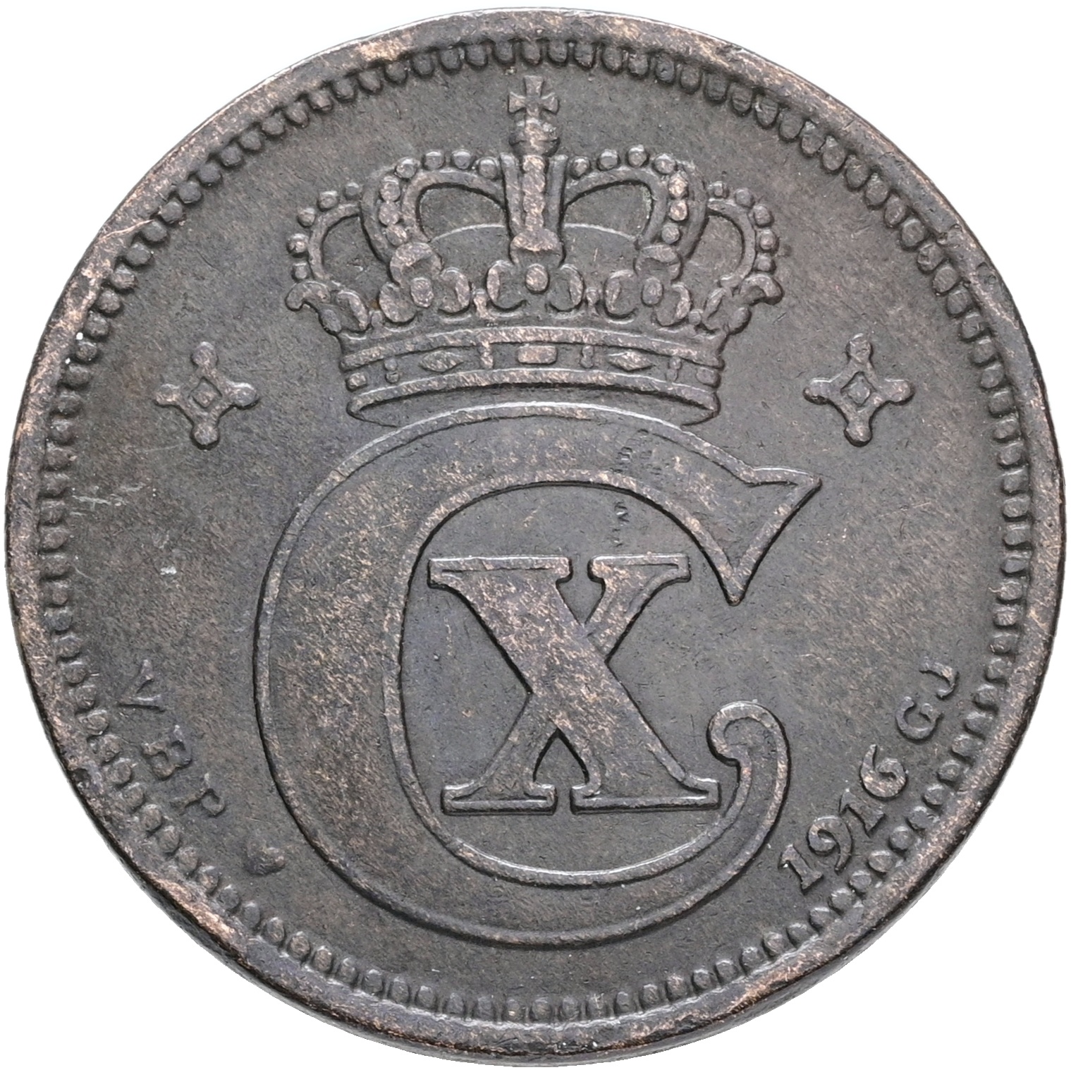 Christian X, 5 øre 1916, Sieg 3.1, H 14A, kv. 1+-1, ks.