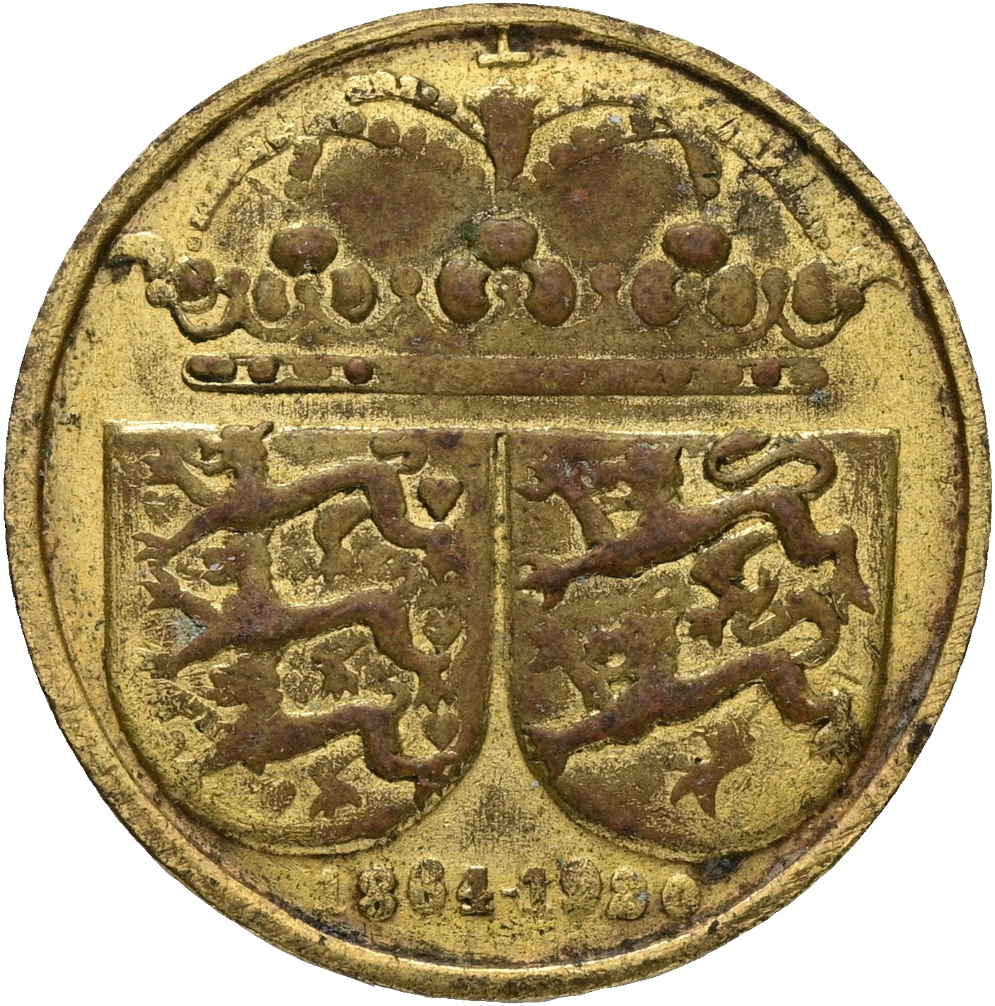 Christian X, Genforeningen 1920, forgyldt Ae, 25 mm, 5,16 g, kv. 1+, afslebet øsken.