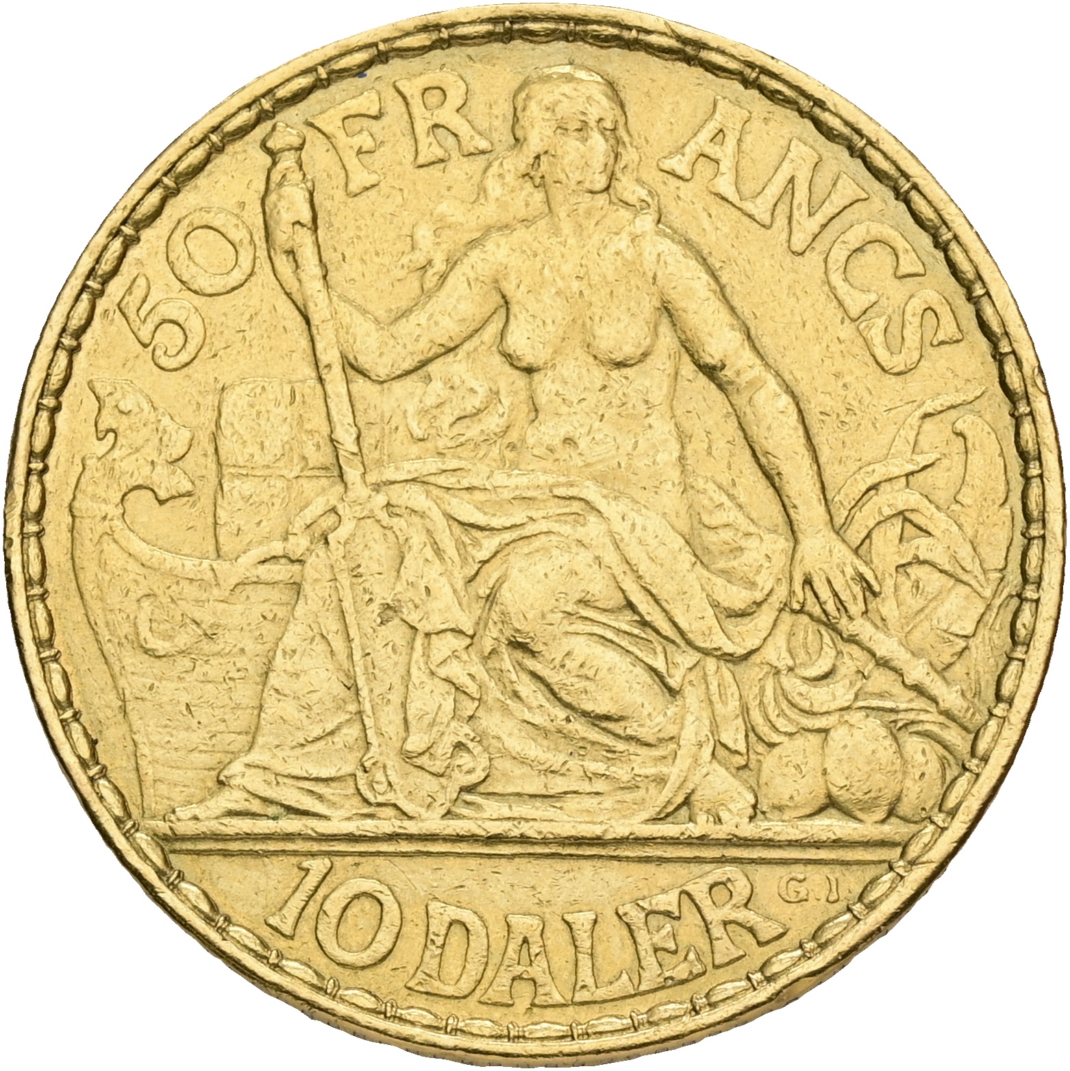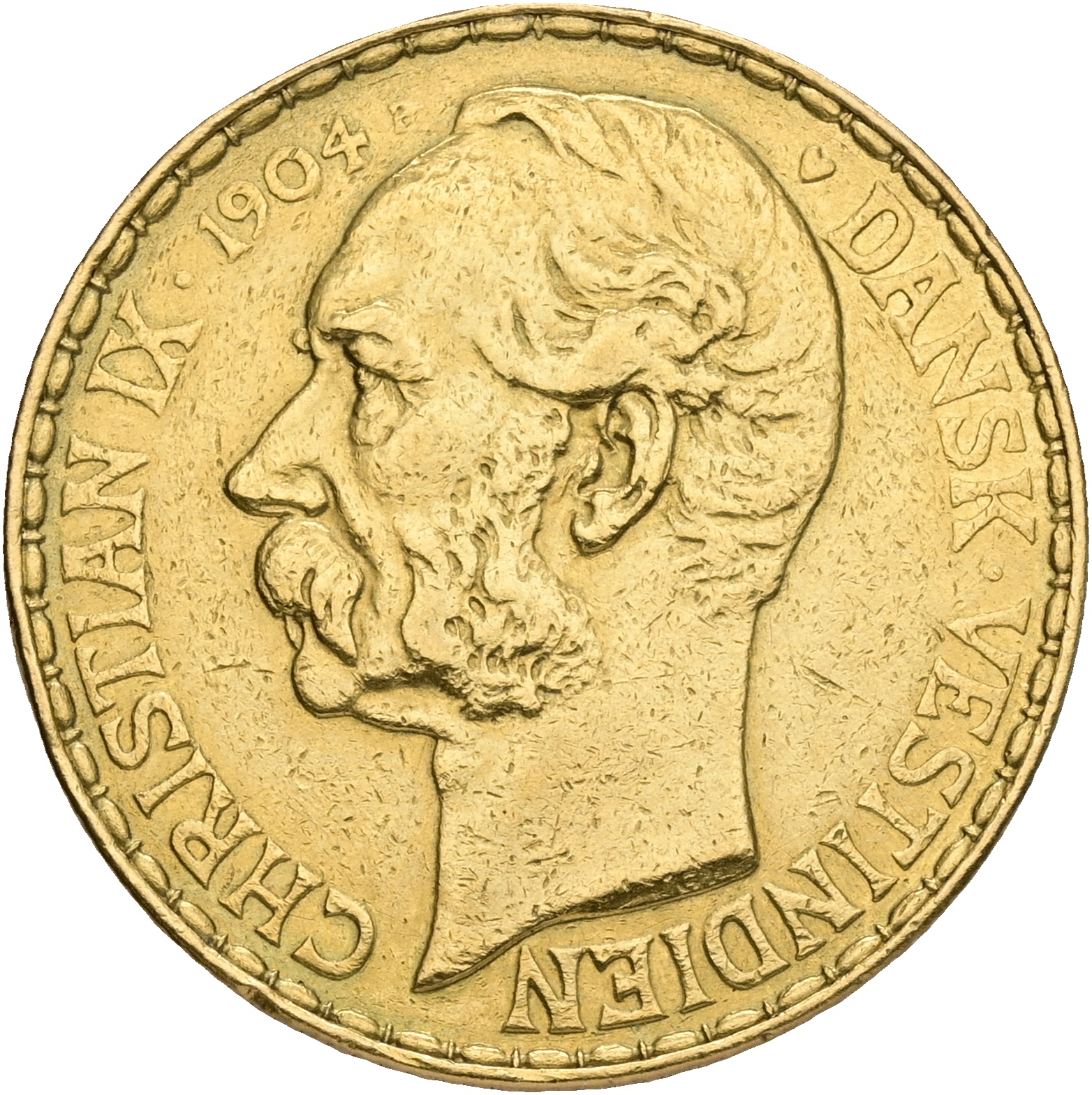 Dansk Vestindien / Danish West Indies, 50 Francs / 10 Daler 1904, Sieg 32, H 29, F 1, kv. 1+-1, renset, v.h. Ex. Thomas Høiland Auktioner 137, 03.11.2010, lot 1743