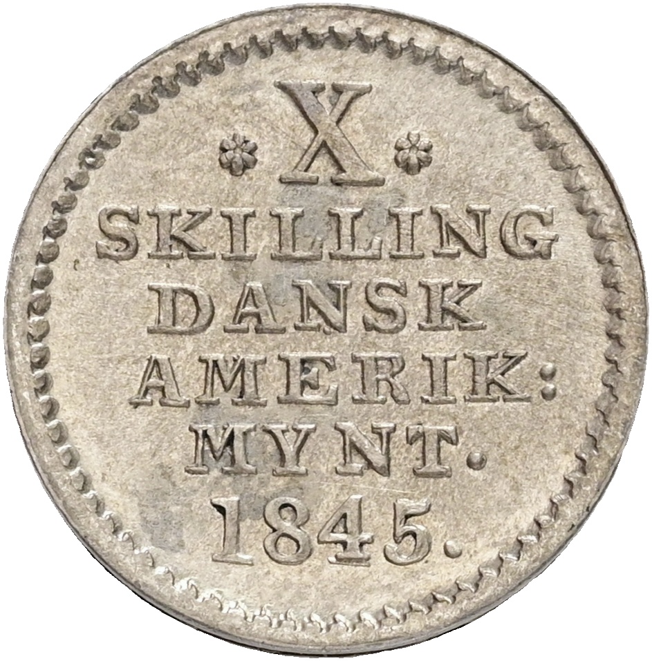Dansk Vestindien / Danish West Indies, Dansk Amerikansk Mønt, 10 skilling 1845, S 12.2, H 14. KM 16, kv. 0-01