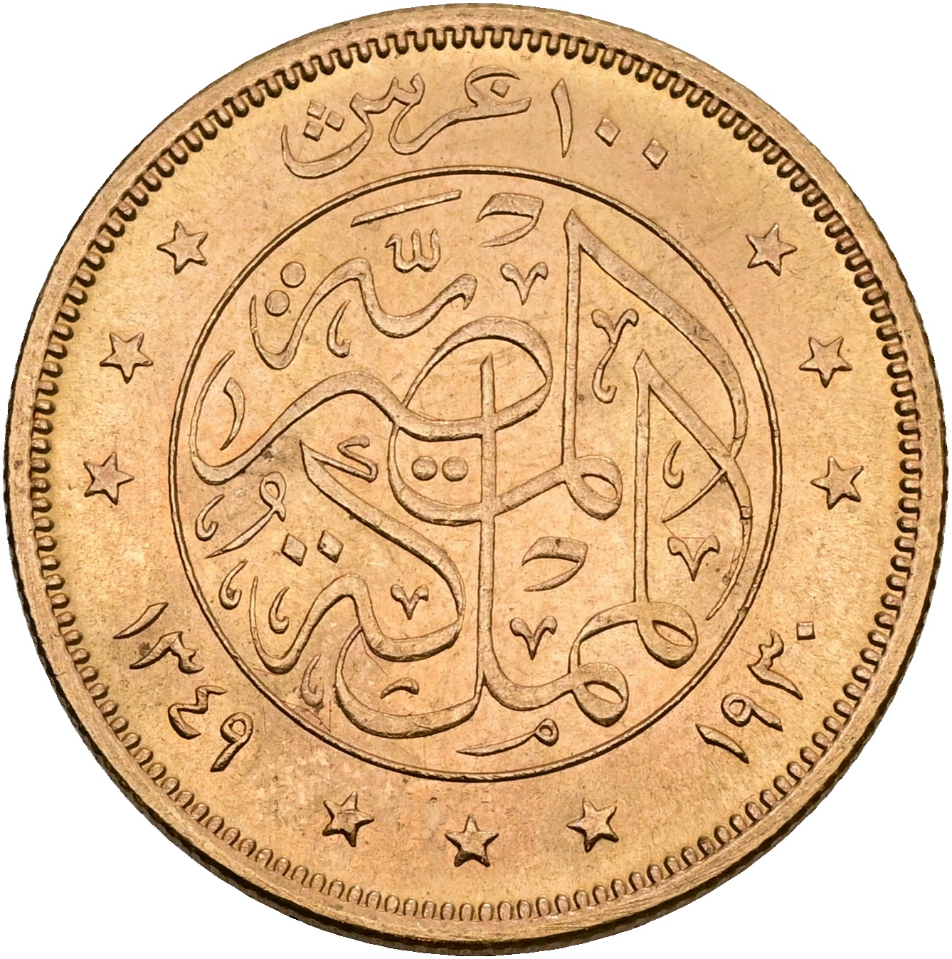 Egypt, Ahmed Faud I, 100 Piastres 1348 (1930), Au, 8.50 g, 875/1000, F 107, KM 354, AU.