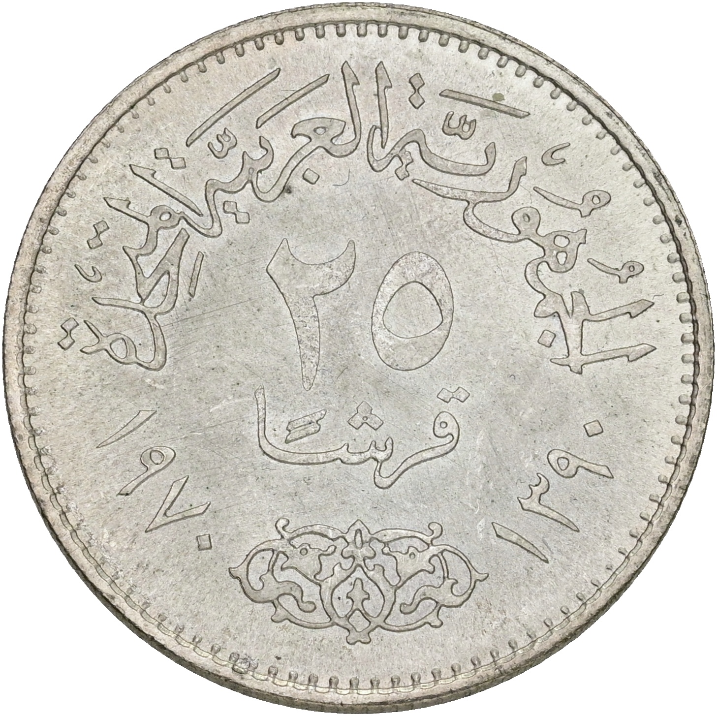Egypt, Nasser, 25 Qirsh 1390 (1970), KM 422, UNC