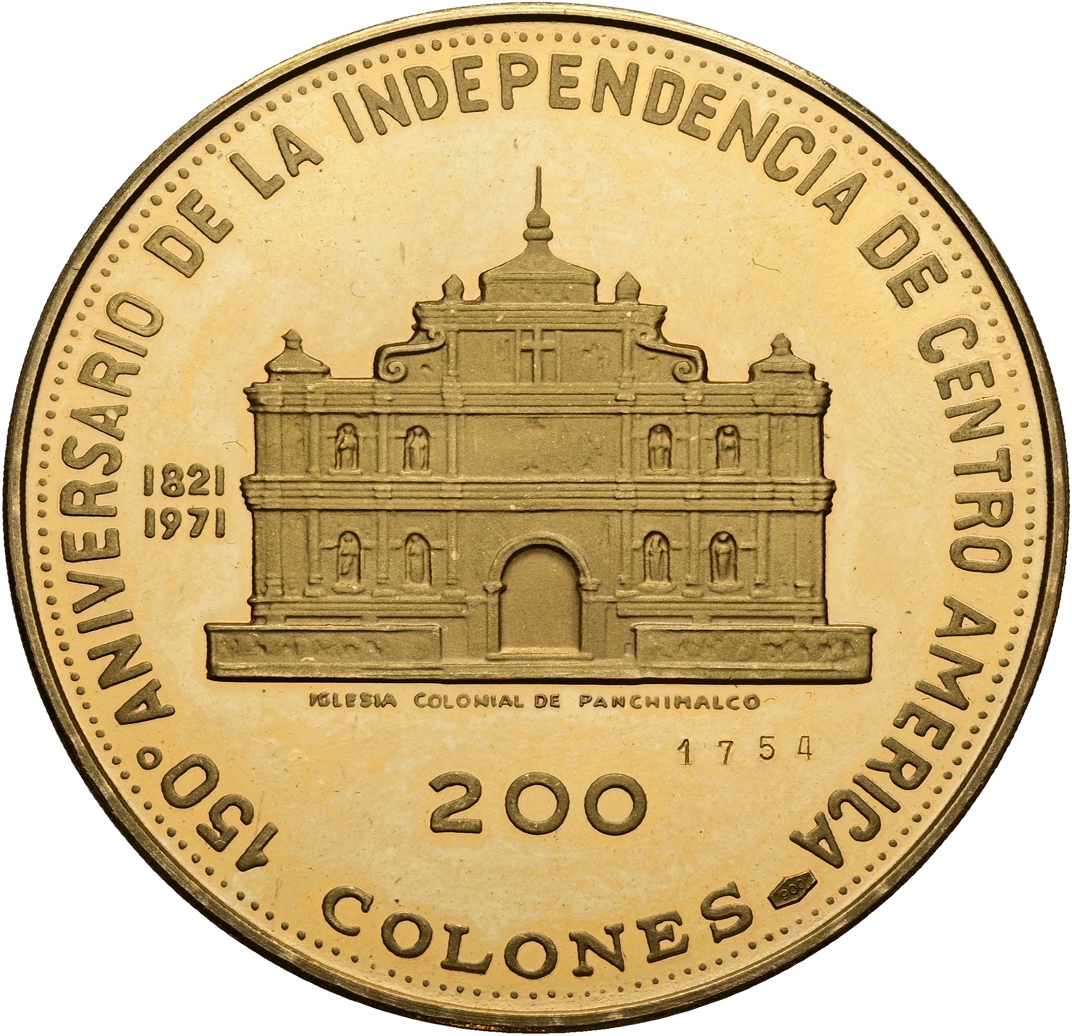 El Salvador, 200 Colones 1971, 150 th anniversary of Independence, Au, 23.6 g 900/1000, KM 146, F 6, Proof, insignificant traces of handling.