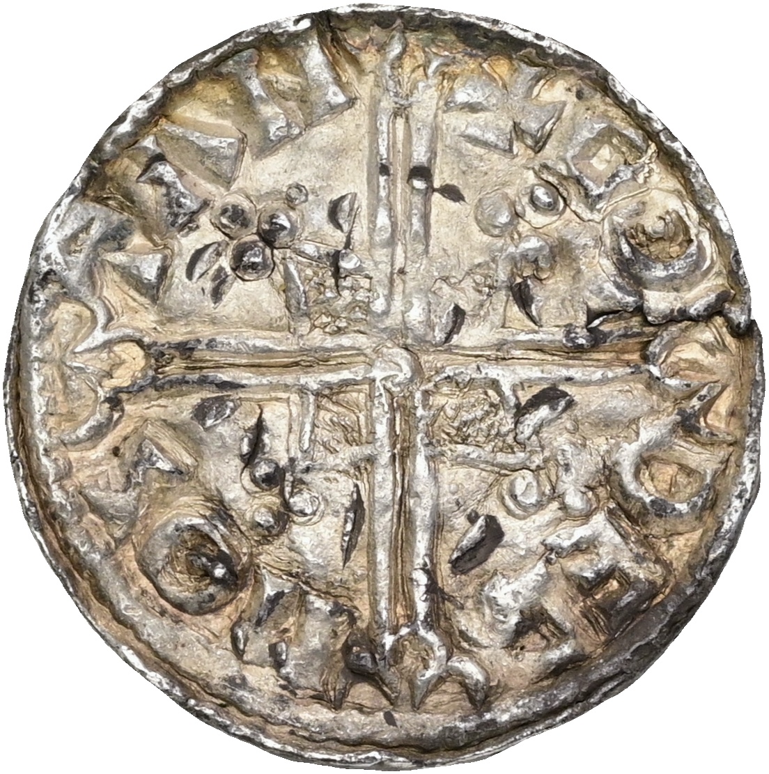 England, Aethelred II, 978–1016, Stamford, Penny, Helmet type, 1003–1009, Moneyer Godeg, 1.38 g, N. 775, S 1152, VF, minor flan flaws, peck marks.