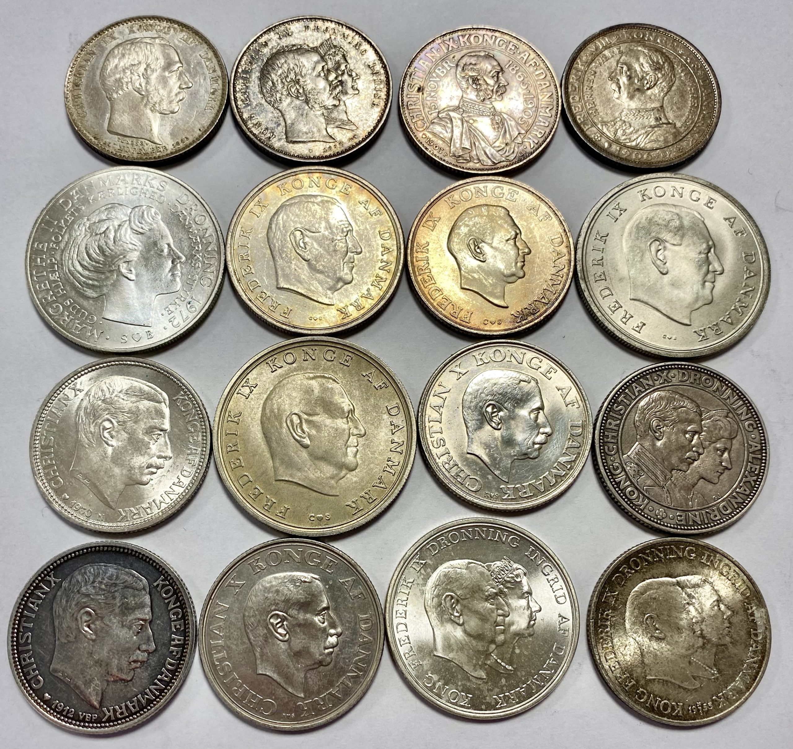 Erindringsmønter, 1888-1972, komplet, 16 stk i varierende kvalitet.