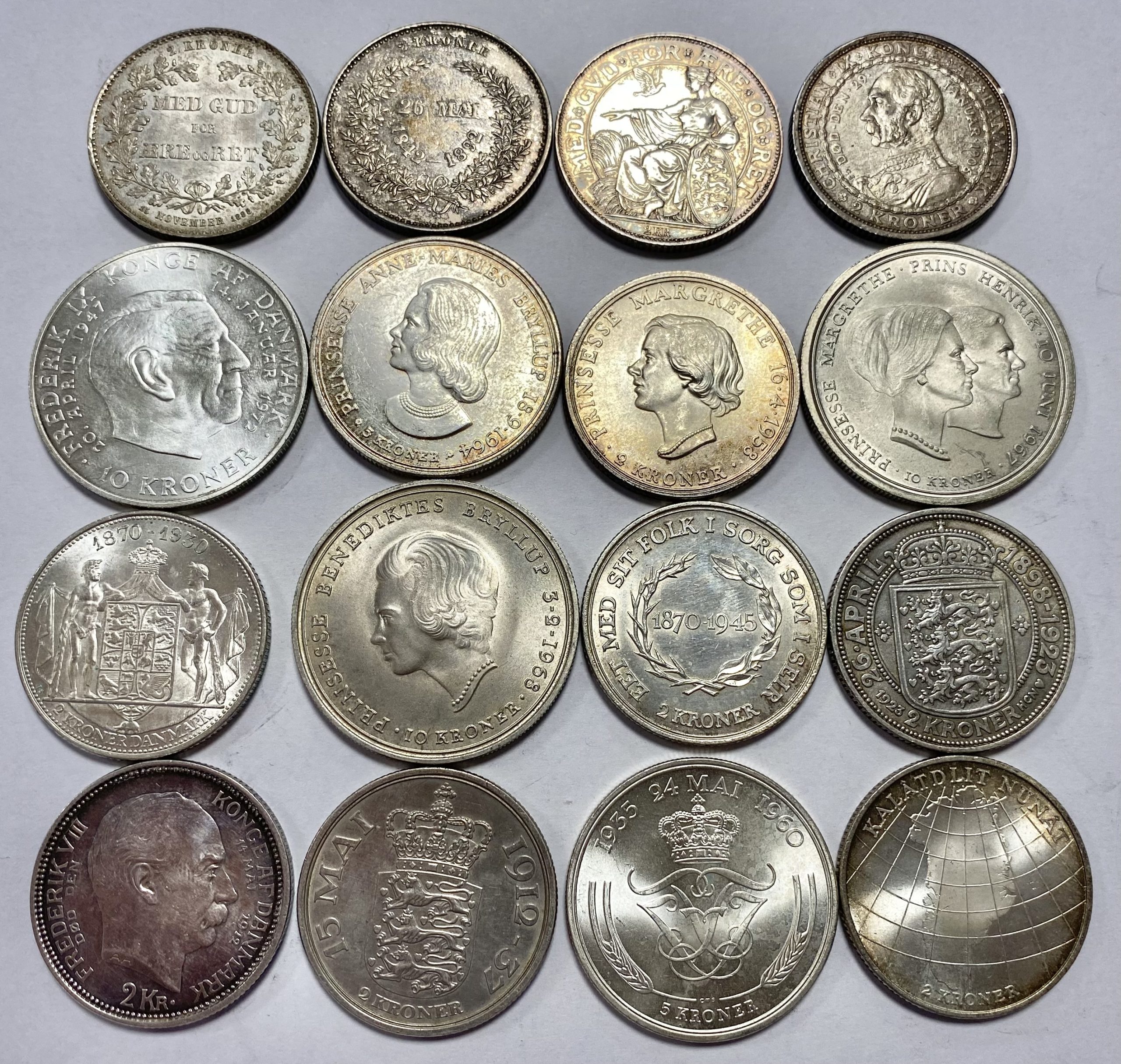Erindringsmønter, 1888-1972, komplet, 16 stk. i varierende kvalitet.