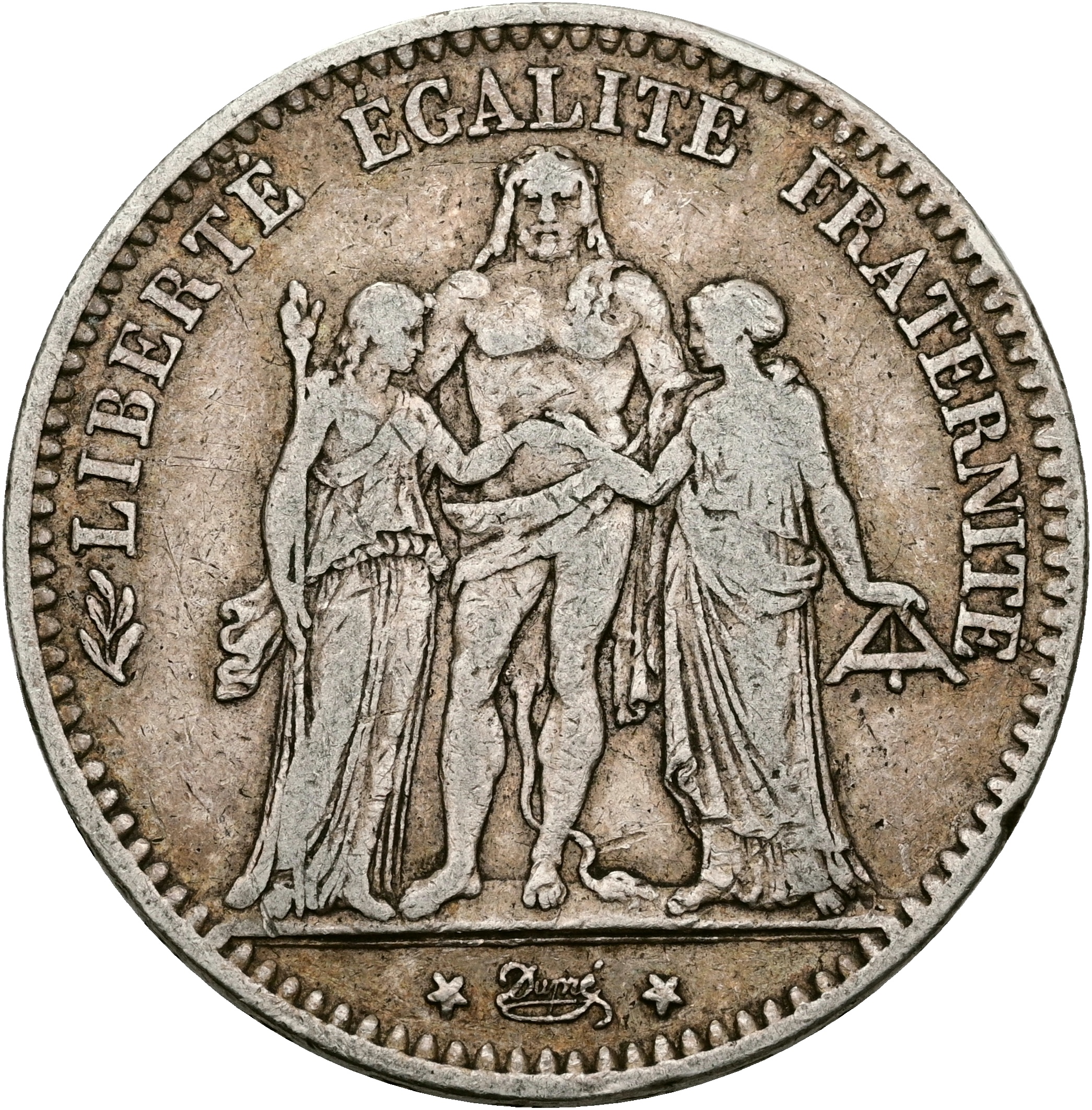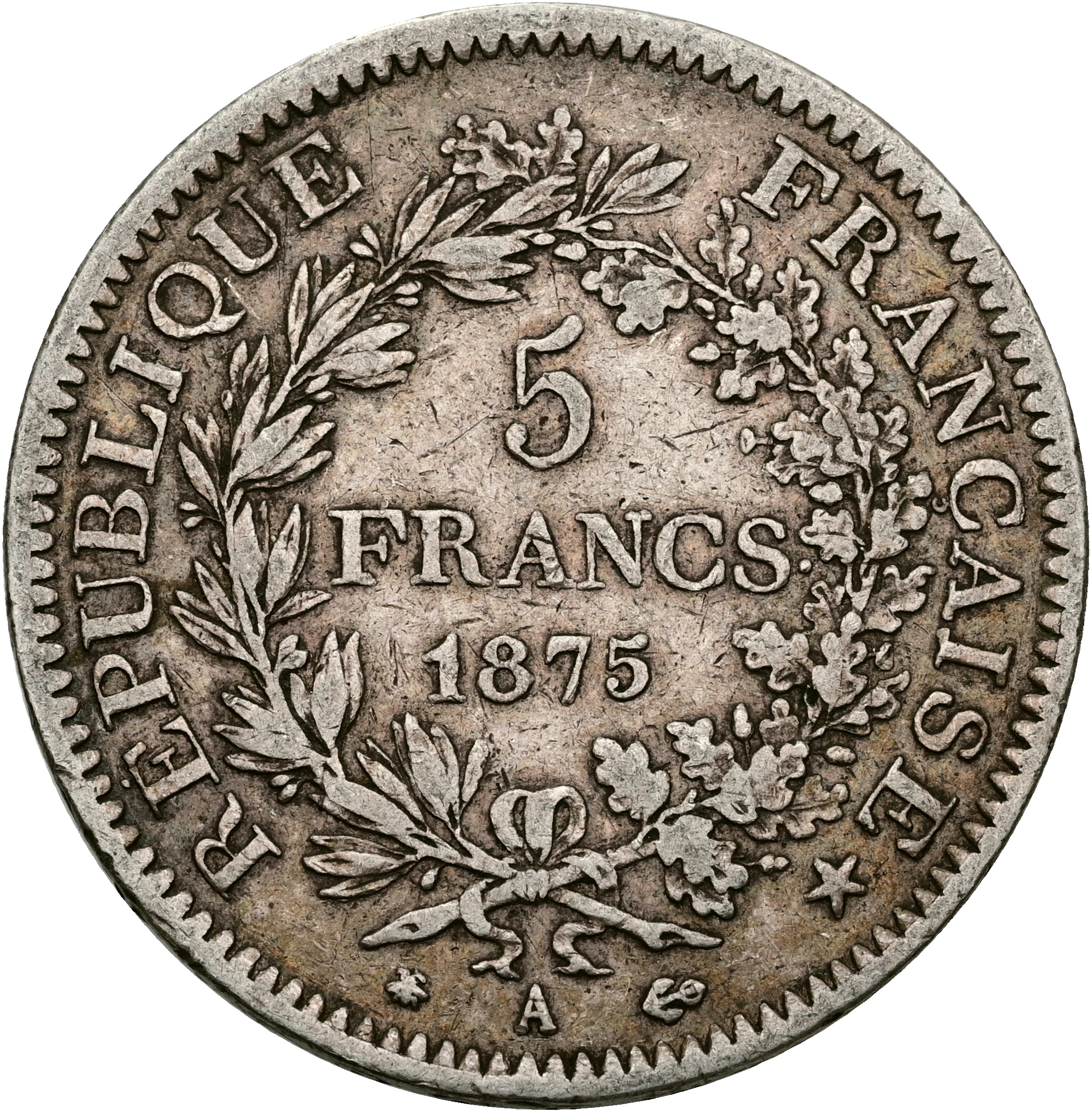France, 5 Francs 1875 A, KM 820.1, VF-F.