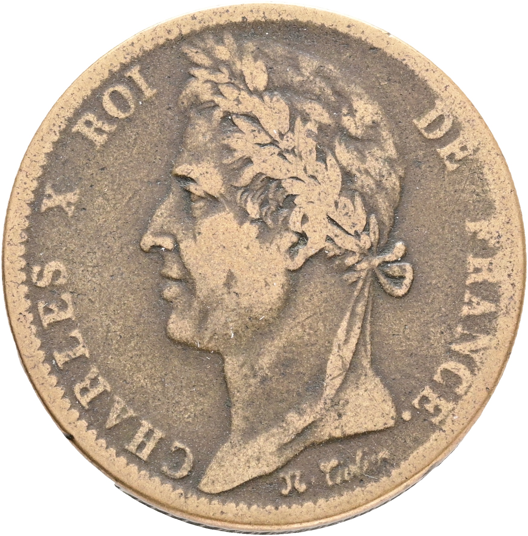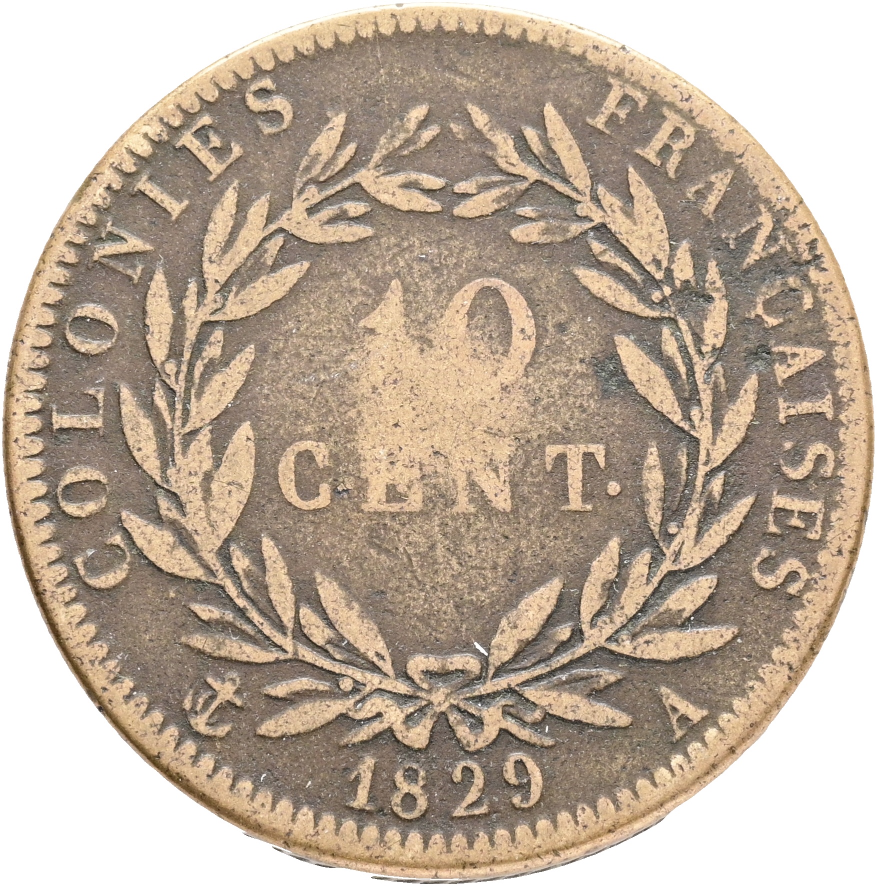 France, French Colonies, Charles X (1824-1830), 10 Centimes 1829 A, Paris mint, KM 11.1, F