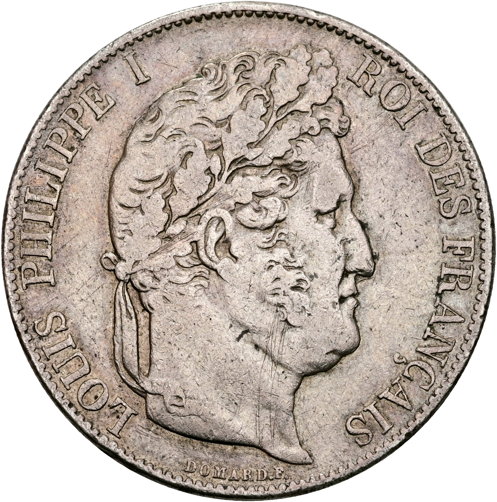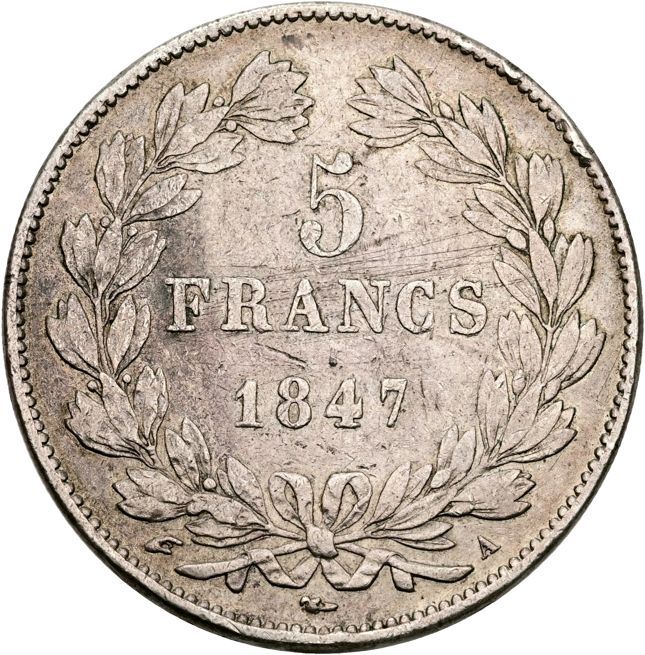 France, Louis Philippe, 5 Francs 1847 A, KM 749.1, VF-F.