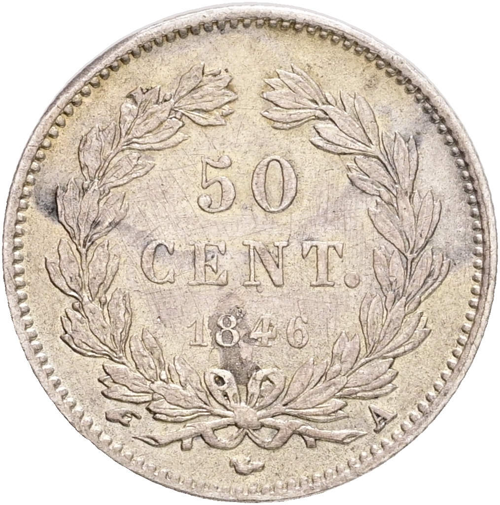 France, Louis Philippe I (1830-1848), 50 Centimes 1846 A, Paris mint, KM 768.1, VF-F, cleaned, minor traces of soldering.