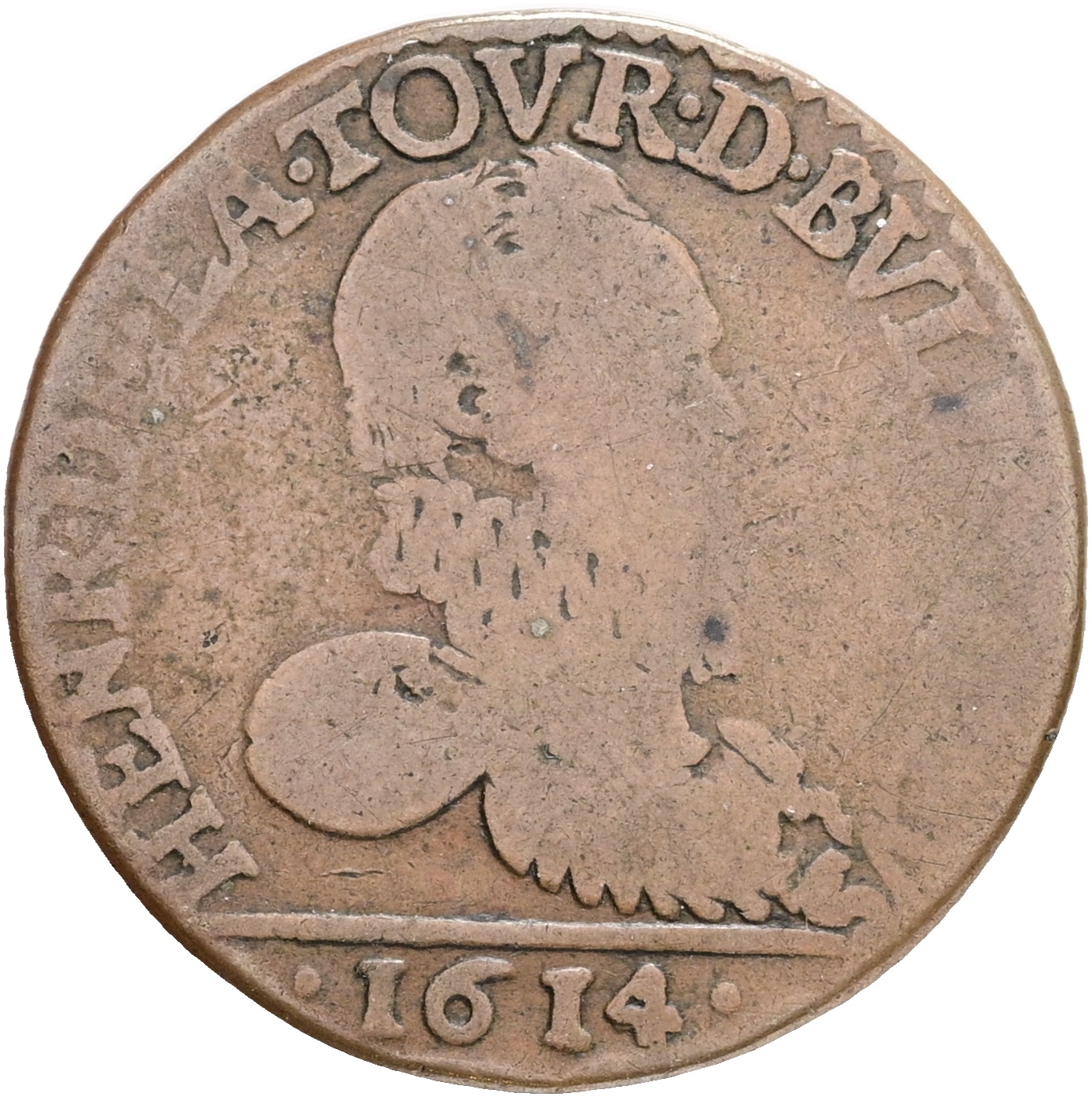 France, Sedan, Henry of the Tour d’Auvergne (1591-1623), Double Liard 1614, Poey d’Avant 6324, VG/F