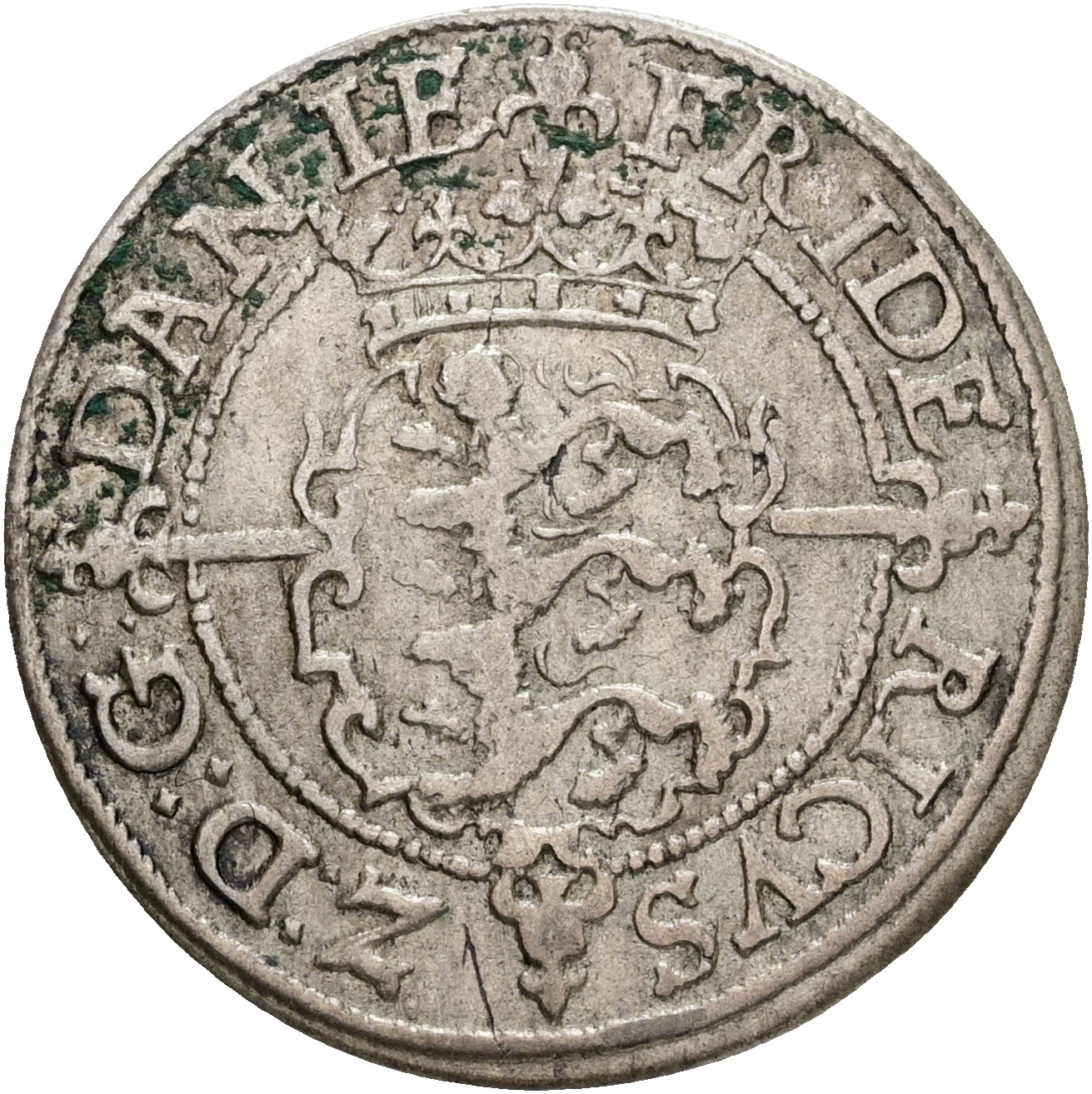 Frederik II, skilling 1563, H 12, Sieg 3, kv. 1+-1/1, korr.