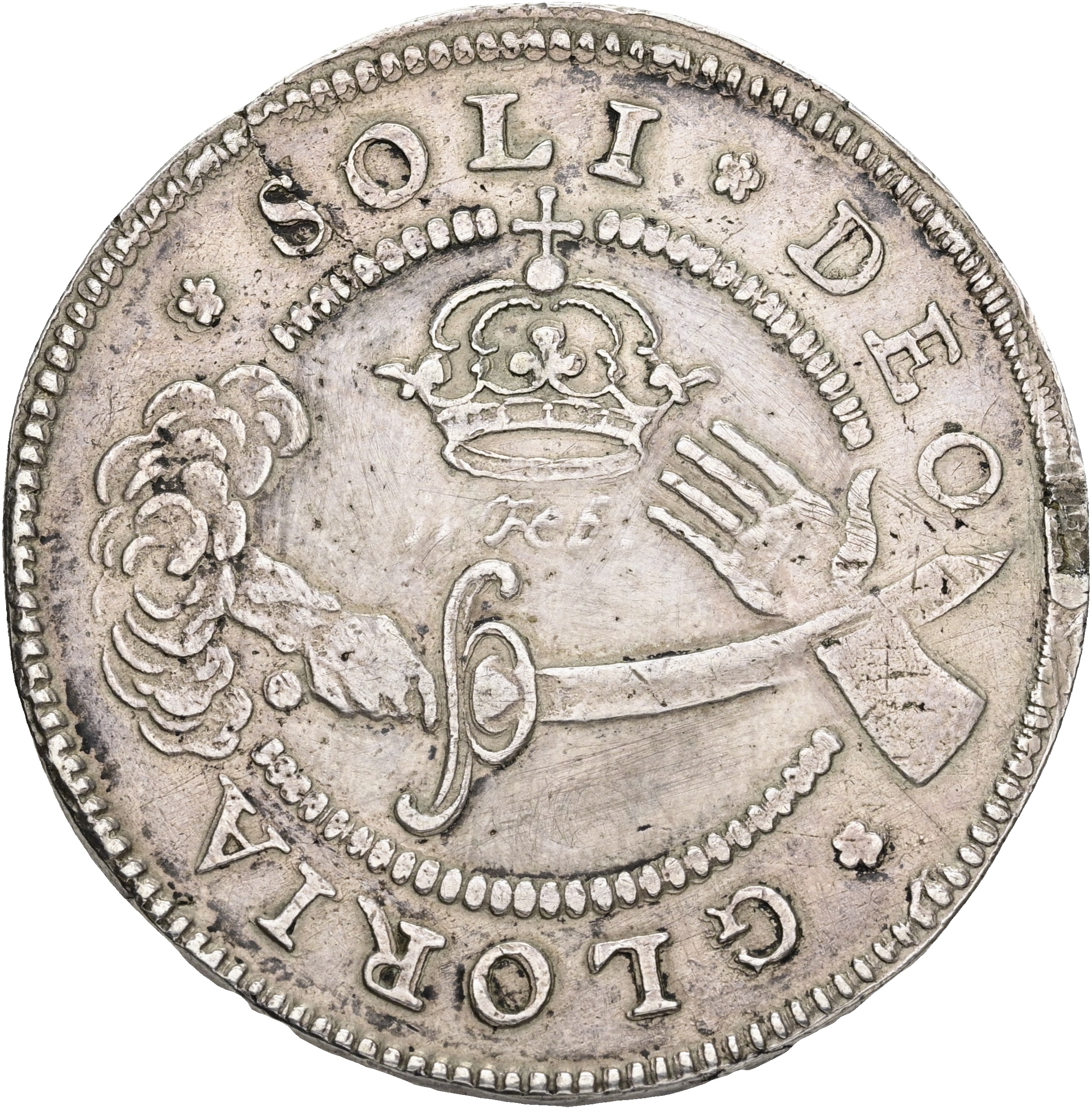 Frederik III, 8 mark / 2 krone 1659, Eben Ezer dobbeltkrone, Sieg 52, H 99, Aagaard 73.1, kv. 1+, blankerevne, renset/ridset i felter, monteringsspor.