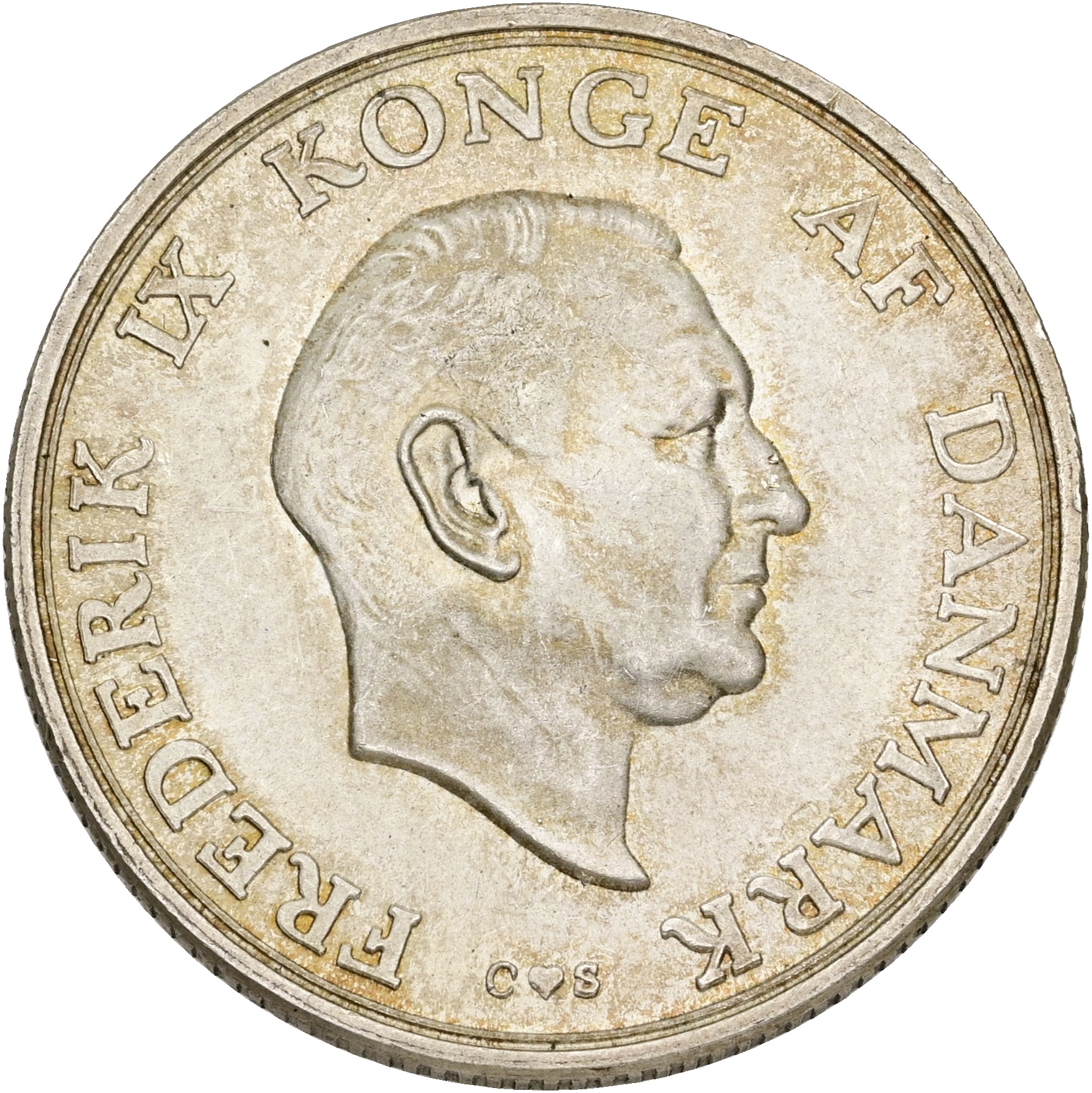 Frederik IX, 2 kroner 1959, H 5B, Sieg 4.2, kv. 1+, let renset.