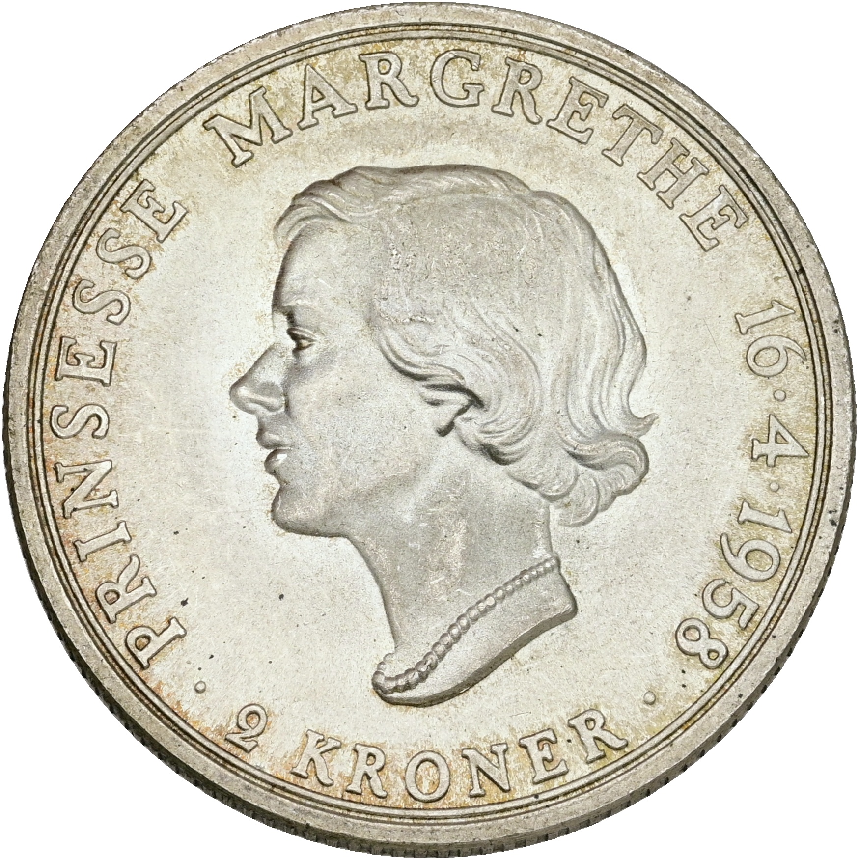 Frederik IX, 2 kroner 1958, erindringsmønt, Prinsesse Margrethe 18 år, H 3, Sieg 11, kv. 0
