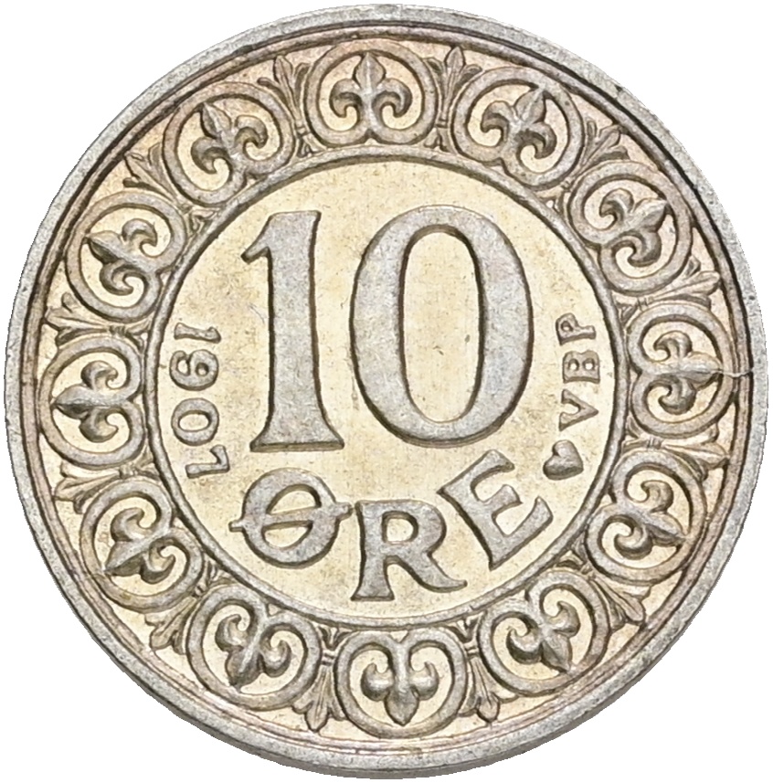 Frederik VIII, 10 øre 1907, Sieg 10.1, H 5, kv. 0-01