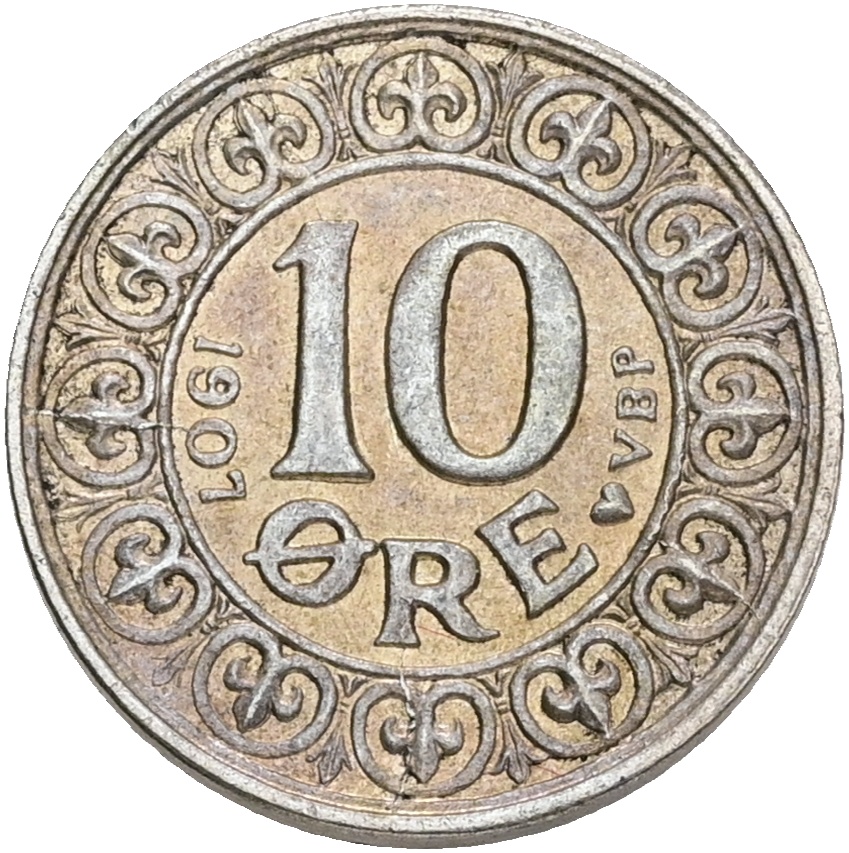 Frederik VIII, 10 øre 1907, Sieg 10.1, H 5, kv. 0-01